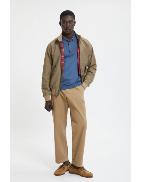 La Baracuta G9 Harrington Jacket Beige está diseñada y fabricada en el Reino Unido desde 1937. Una prenda icónica de estilo británico, reconocida por su versatilidad y su herencia cultural, que se mantiene vigente temporada tras temporada. Su interior está forrado con el emblemático Fraser Tartan en algodón Coolmax® transpirable, que aporta confort y ventilación. Entre sus detalles distintivos destacan el cuello dog ear con cierre de dos botones, las mangas raglán que garantizan libertad de movimiento, el umbrella back yoke que protege de la lluvia y los bolsillos diagonales diseñados originalmente para guardar pelotas de golf. Los puños, cintura y cuello interior acanalados aportan ajuste y protección adicional.