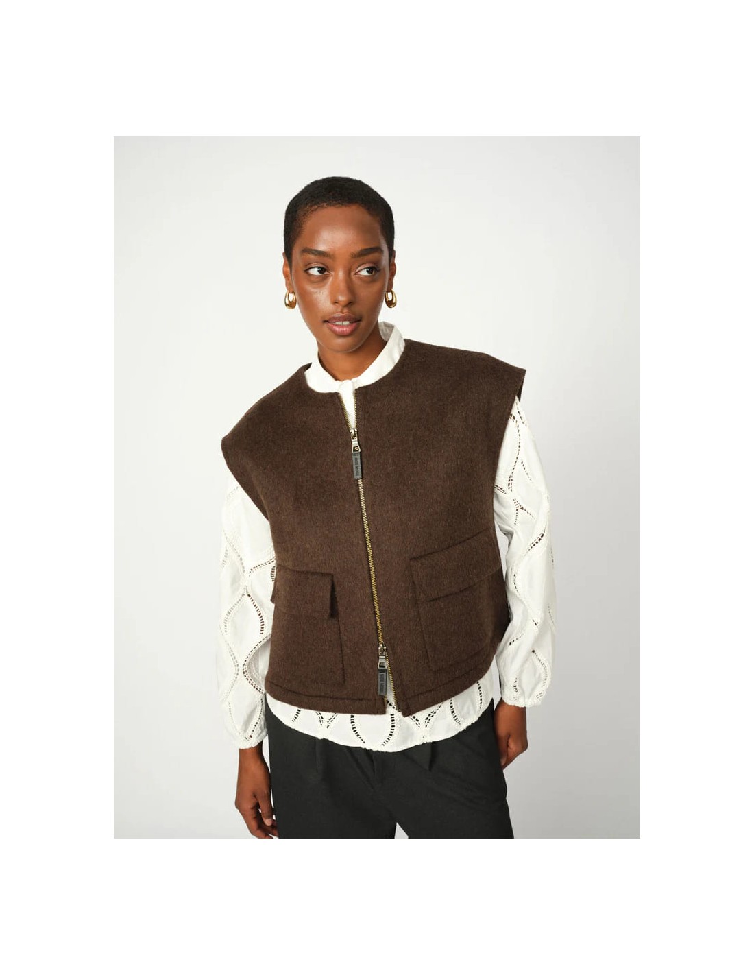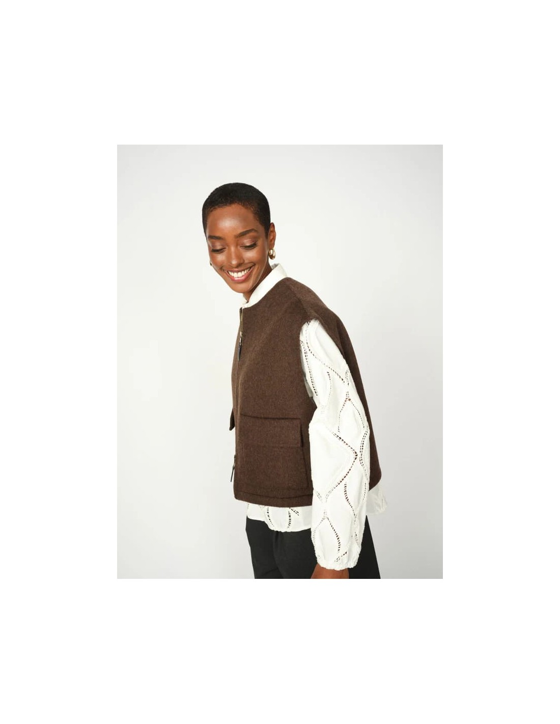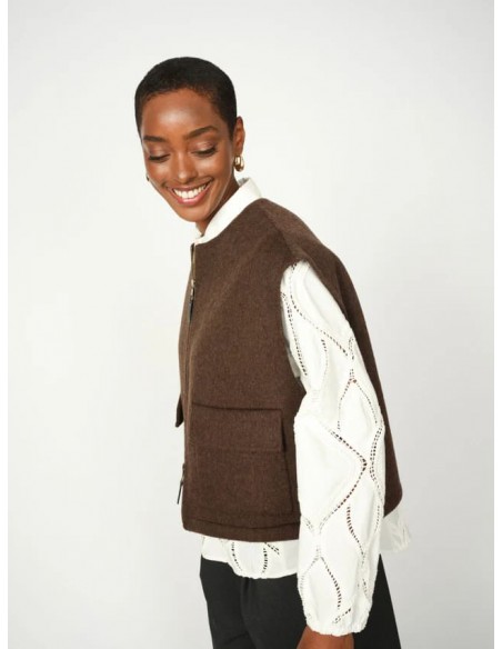 El MMElise Loisa Wool Vest de Mos Mosh combina estilo contemporáneo y funcionalidad para un look versátil y elegante. Confeccionado en mezcla de lana (60% lana, 30% poliéster, 5% lyocell, 5% otras fibras), ofrece calidez ligera y suavidad. Su corte relajado permite un fácil layering sobre prendas de manga larga, mientras que el cierre de cremallera y los cordones ajustables en el bajo aseguran un ajuste perfecto. Los bolsillos con solapa aportan practicidad y estilo, convirtiéndolo en una pieza ideal tanto para looks urbanos como para capas exteriores de temporada.
