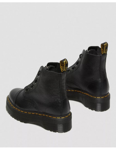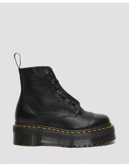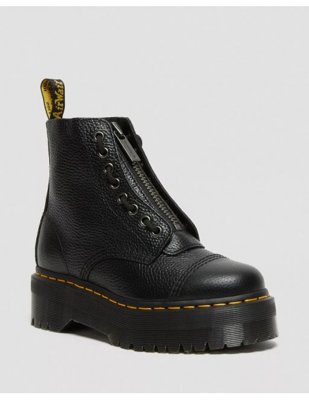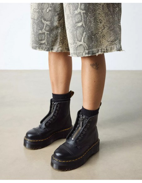 Las Sinclair con plataforma de Dr. Martens son una de las siluetas más emblemáticas de la marca, diseñadas para quienes buscan un calzado con carácter y personalidad. Confeccionadas en piel Milled Nappa, una piel de grano medio flexible y suave desde el primer día, estas botas destacan por su cremallera frontal extraíble, que permite jugar con dos estilos distintos, y por los icónicos detalles DM’s: el pespunte amarillo, los bordes acanalados y el tirador trasero con logotipo.