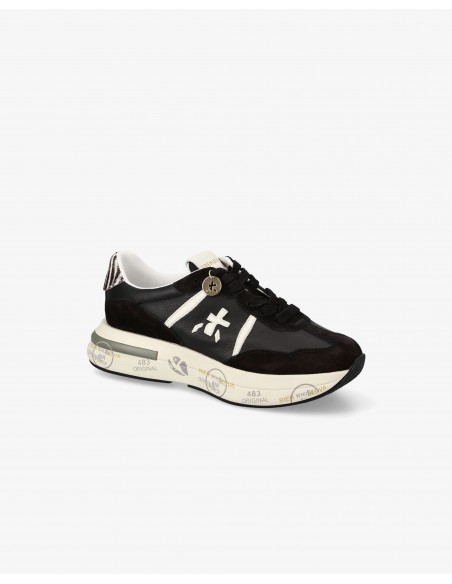 Las CASSIE 7681 de Premiata combinan elegancia y estilo urbano en un diseño único. Con empeine de piel de ternera, poliéster y piel de ternera con pelo, estas zapatillas destacan por su logo lateral y detalle de estampado cebra en el talón, así como por la suela con sellos de la marca que refuerzan su carácter distintivo. La combinación de EVA y goma en la suela proporciona amortiguación y confort, mientras que el forro de piel de cabra y ternera garantiza suavidad y durabilidad. Perfectas para quienes buscan un look moderno y original.