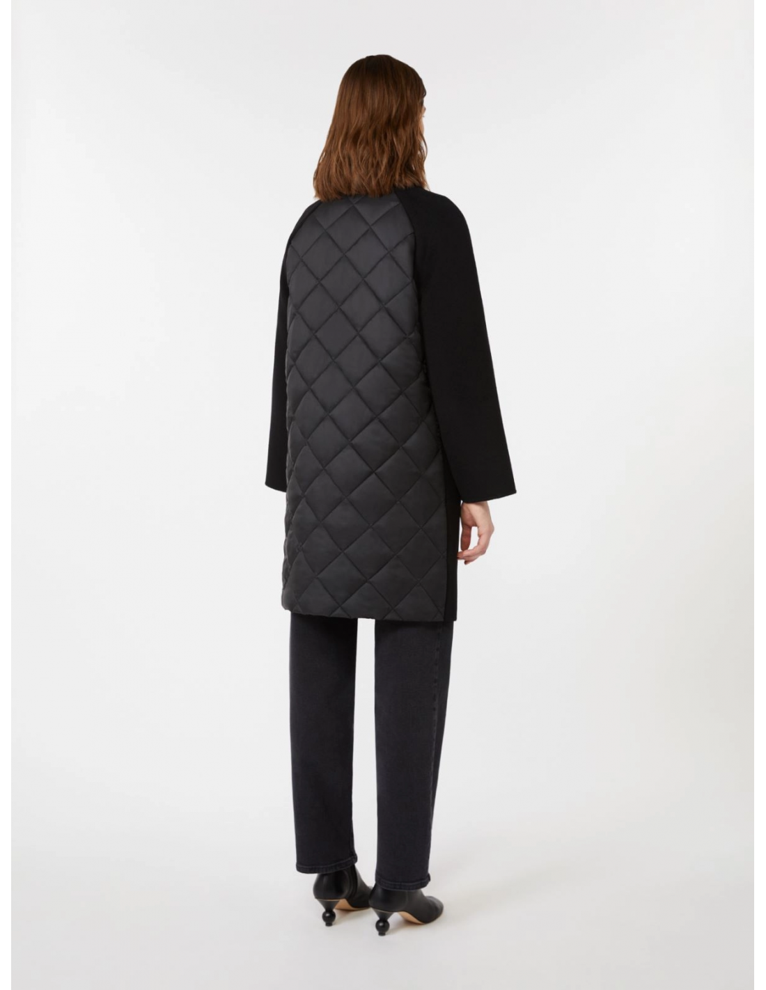 El Abrigo Zolfo de Max Mara encarna la elegancia sobria con un toque técnico innovador. Confeccionado en 100% lana virgen, destaca por su espalda en lona repelente al agua, acolchada en rombos con tecnología Luxepad, que combina poliéster, lana de camello y seda para un aislamiento ultra-ligero y cálido. Su corte recto midi estiliza la silueta, mientras que el cuello con pequeñas solapas y las mangas raglán largas aportan un aire refinado. El cierre doble botonadura visible y los bolsillos verticales con solapa en el frente refuerzan su carácter práctico y urbano. Forrado en 100% poliéster, asegura confort y caída impecable.
