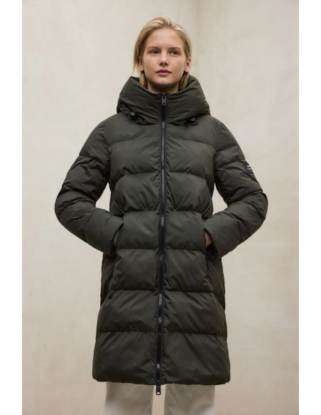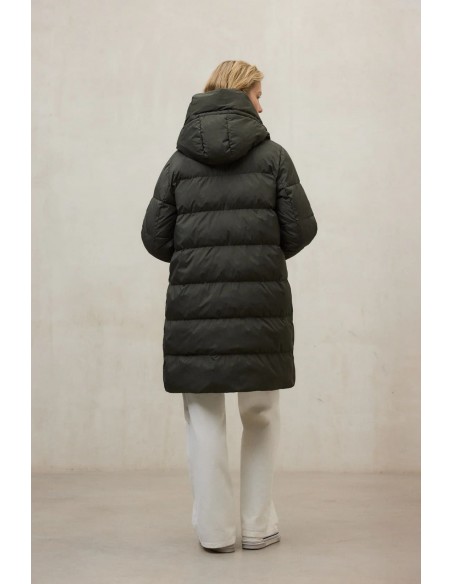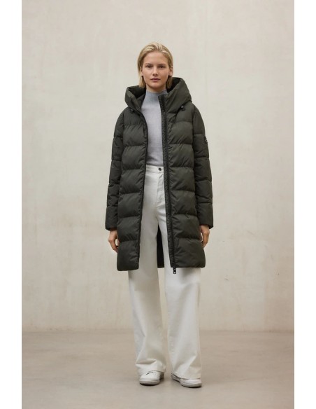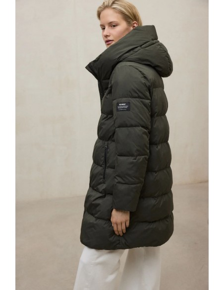 El abrigo Manlie Verde Oscuro de Ecoalf combina diseño urbano, funcionalidad y sostenibilidad. Confeccionado en 100% poliéster reciclado, tanto en tejido exterior como en el forro, e incorporando relleno PrimaLoft® reciclado, reduce el impacto ambiental sin renunciar al rendimiento. Su corte relajado y largo por encima de la rodilla lo convierten en una prenda versátil para el día a día.
