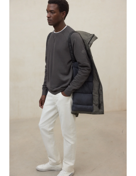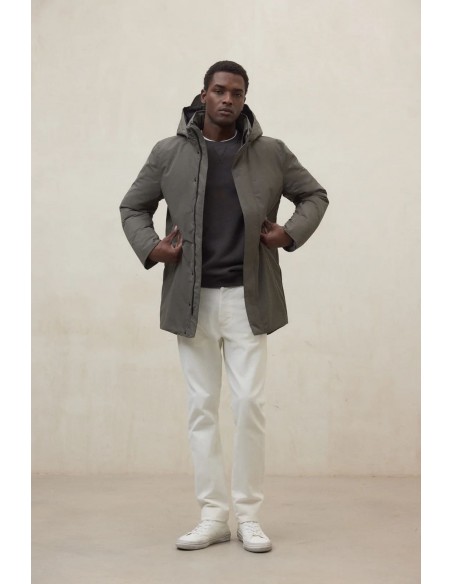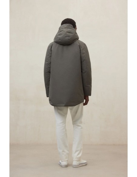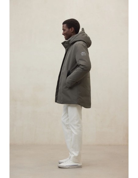 El abrigo Parko de Ecoalf es la combinación perfecta de funcionalidad, diseño y sostenibilidad. Confeccionado con un tejido principal de 58% poliéster reciclado del mar y 42% poliéster reciclado Tex2Tex, incorpora forro y relleno PrimaLoft® también reciclados al 100%. Este proceso contribuye a reducir residuos plásticos, emisiones y el uso de recursos fósiles, promoviendo una economía circular real.