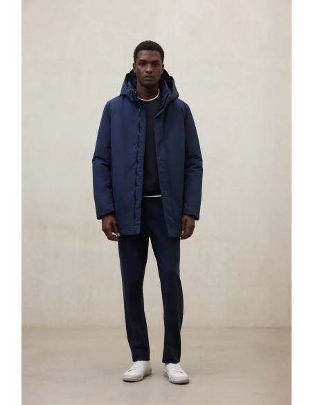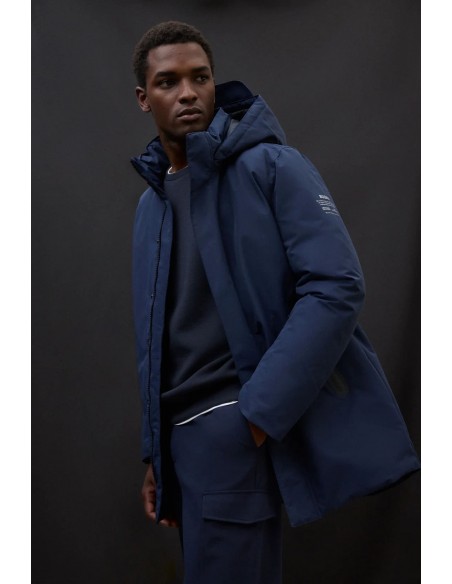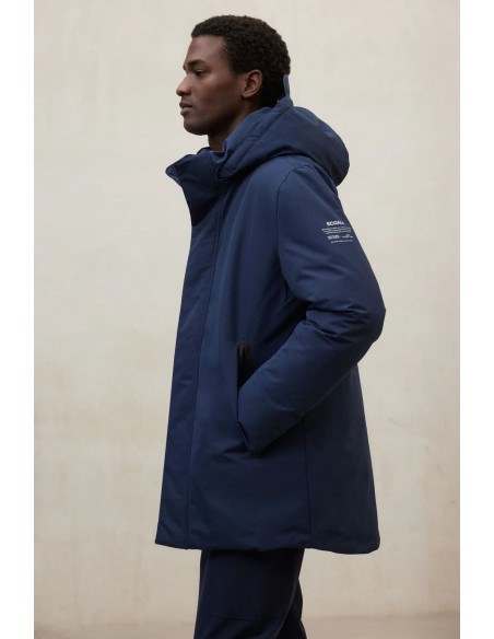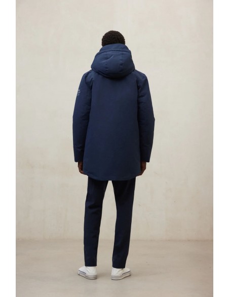 El abrigo Parko de Ecoalf es la combinación perfecta de funcionalidad, diseño y sostenibilidad. Confeccionado con un tejido principal de 58% poliéster reciclado del mar y 42% poliéster reciclado Tex2Tex, incorpora forro y relleno PrimaLoft® también reciclados al 100%. Este proceso contribuye a reducir residuos plásticos, emisiones y el uso de recursos fósiles, promoviendo una economía circular real.