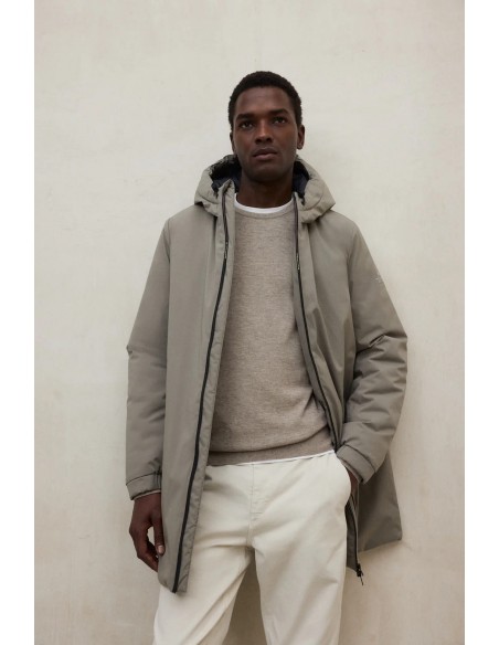 El abrigo Pasu Dune de Ecoalf combina diseño funcional, protección climática y sostenibilidad. Confeccionado íntegramente en 100% poliéster reciclado en el tejido principal, forro y relleno, reutiliza plásticos como botellas PET para reducir residuos, emisiones y consumo de recursos, manteniendo las propiedades del poliéster virgen.