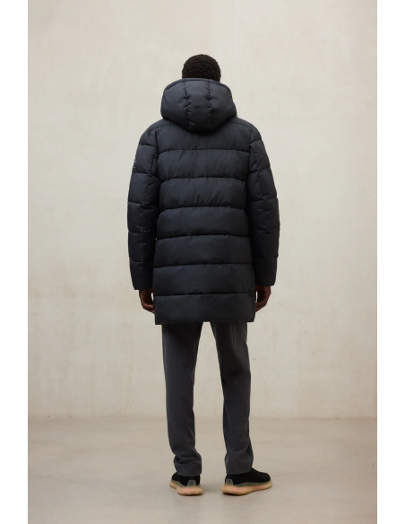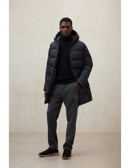 El abrigo Vintage Antracita de Ecoalf combina estilo urbano, funcionalidad y sostenibilidad. Confeccionado en 90% poliéster reciclado, con forro de la misma composición y relleno 100% reciclado, reutiliza plásticos como botellas PET, reduciendo el impacto ambiental y manteniendo la calidad del tejido.