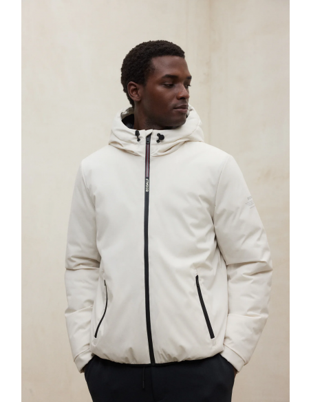 La chaqueta Cartes Blanco Lavado de Ecoalf combina sostenibilidad, funcionalidad y estilo urbano. Confeccionada en 100% poliéster reciclado, incluyendo forro y relleno, reutiliza plásticos como botellas PET, reduciendo emisiones y consumo de recursos, sin comprometer la calidad ni la durabilidad.