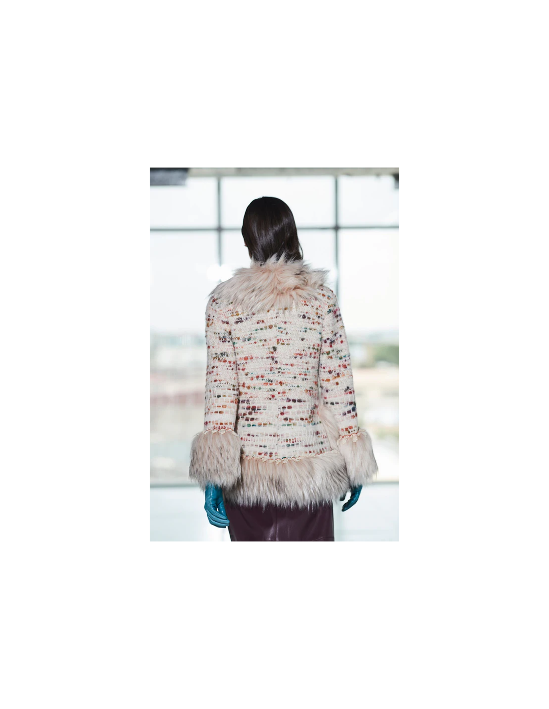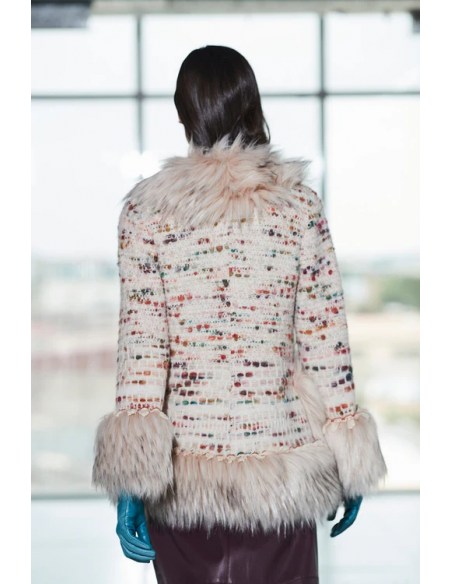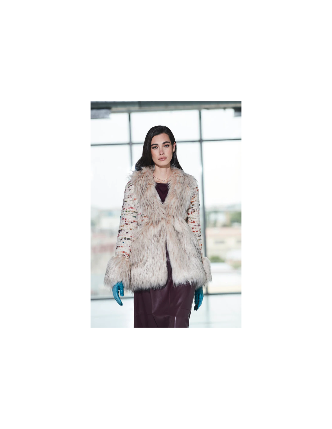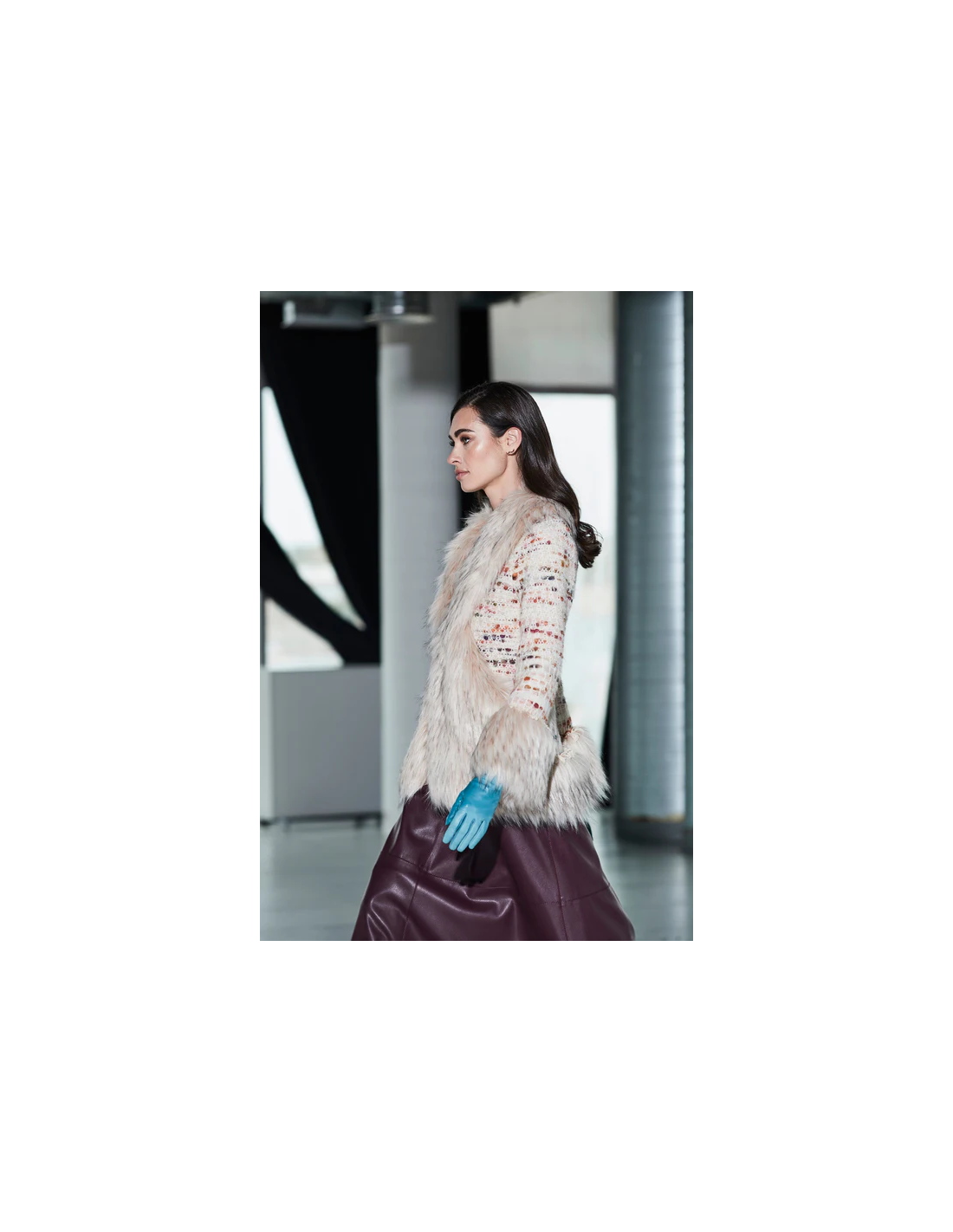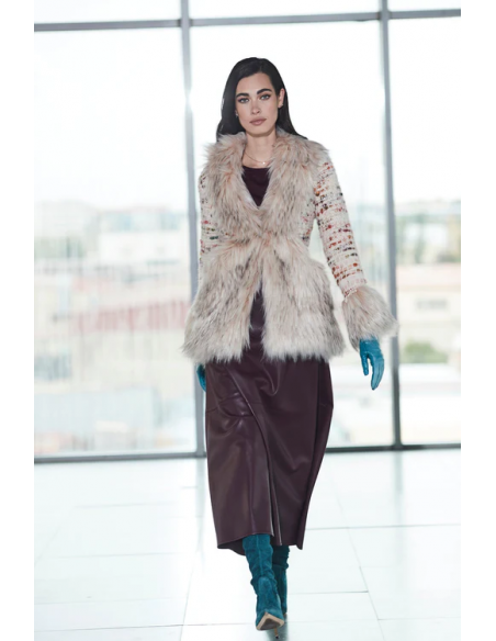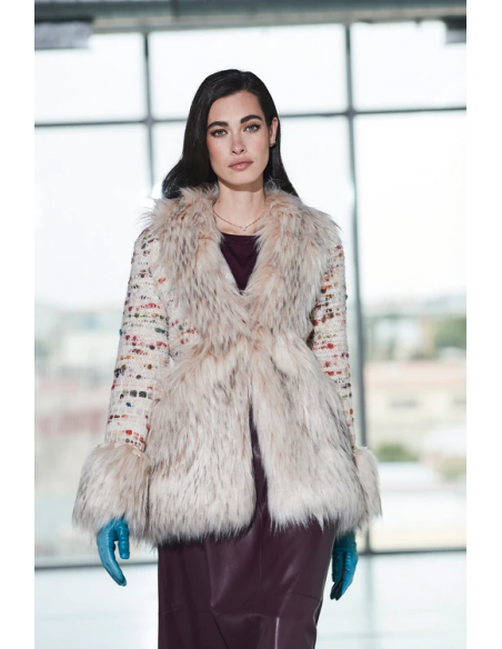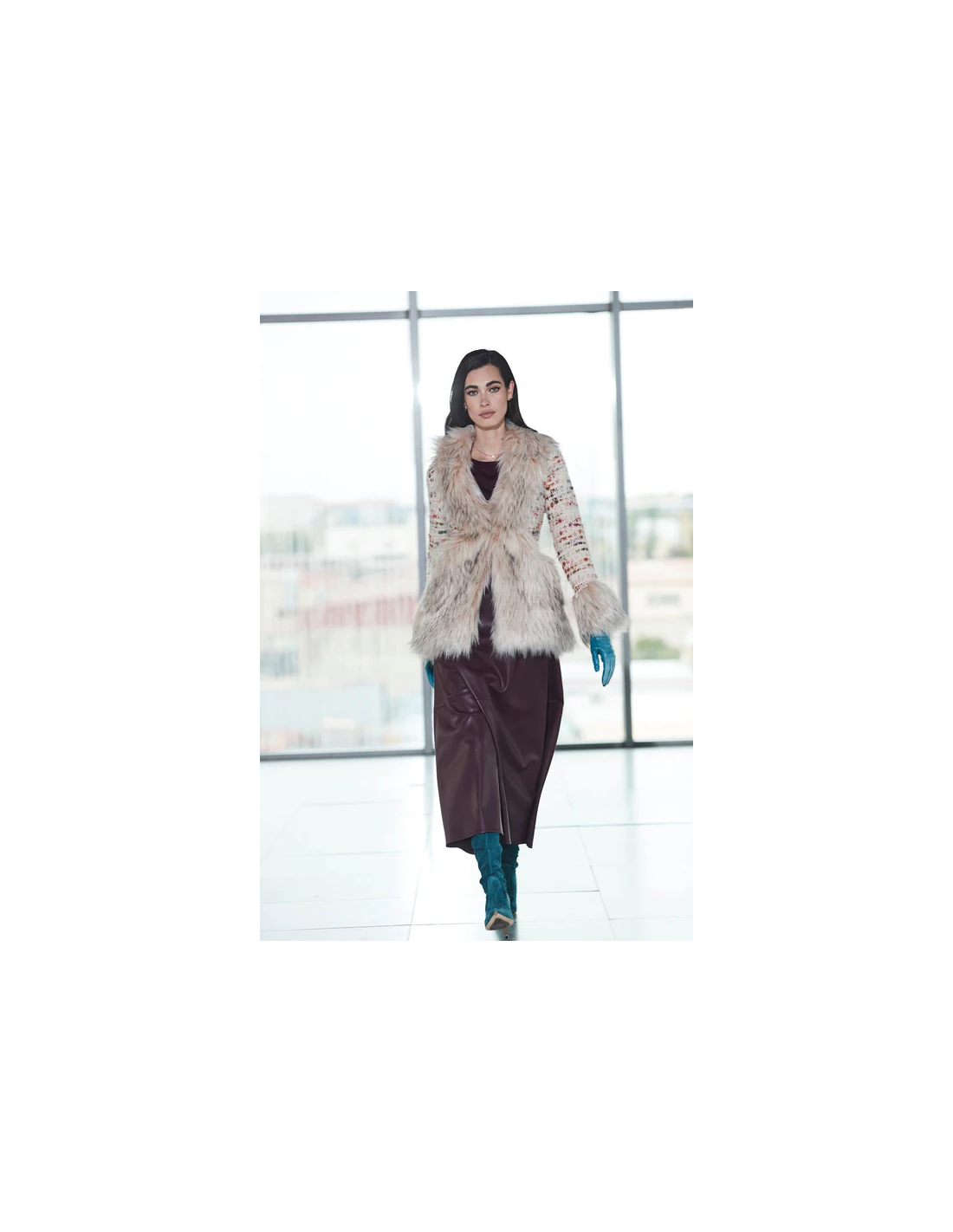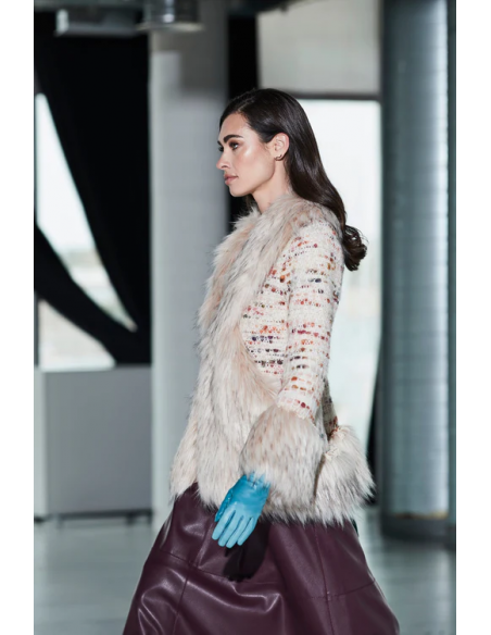 El Abrigo Alabastro Clemence de The Extreme Collection combina lujo, estilo vanguardista y responsabilidad ambiental. Confeccionado en mezcla de fibras (40% poliacrílico, 30% lana, 10% alpaca, 10% viscosa, 10% poliéster), presenta un tramado excepcional en bastas, donde un hilo estampado se entrelaza con pelo ecológico, creando una textura visualmente rica y táctil. Su diseño corto ofrece calidez envolvente y un aire moderno y sofisticado, pensado para mujeres que buscan distinción y elegancia sin compromisos. Cada detalle del abrigo refleja singularidad y presencia, convirtiéndolo en una pieza central de cualquier atuendo y una inversión atemporal en el guardarropa.