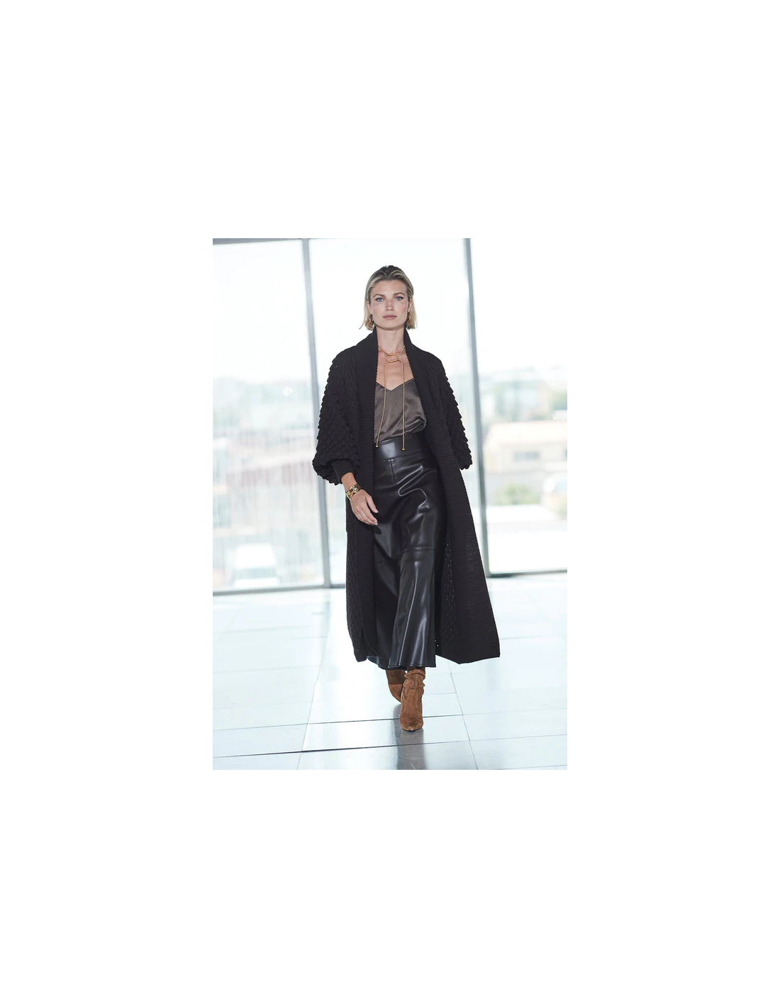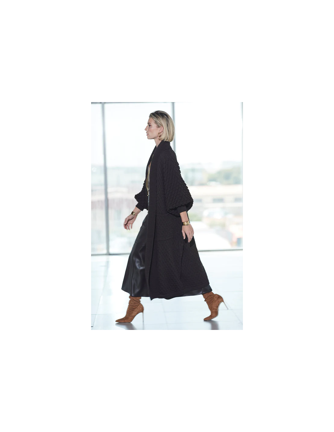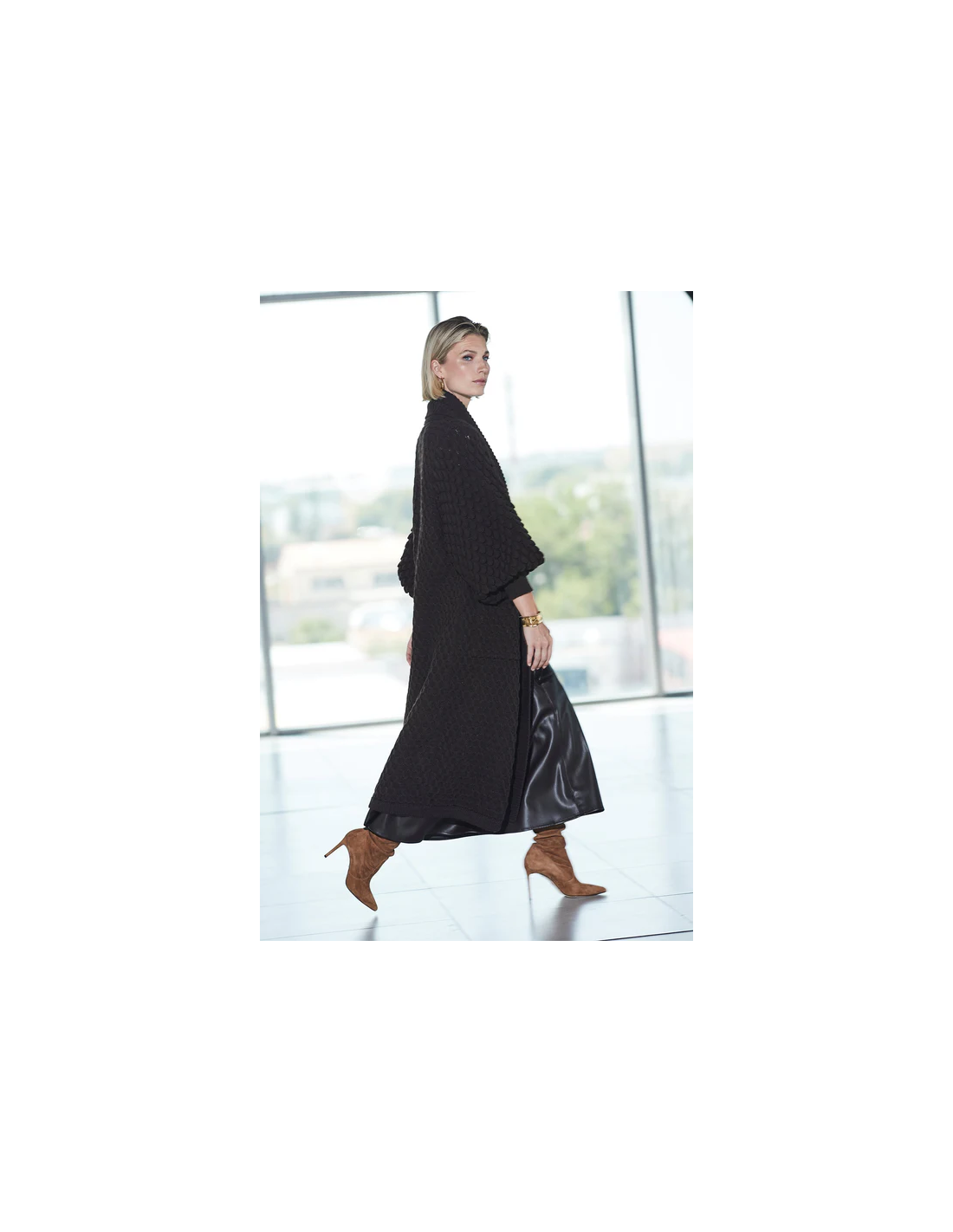 Fitting: corte amplio y fluido, pensado para un ajuste cómodo y elegante.