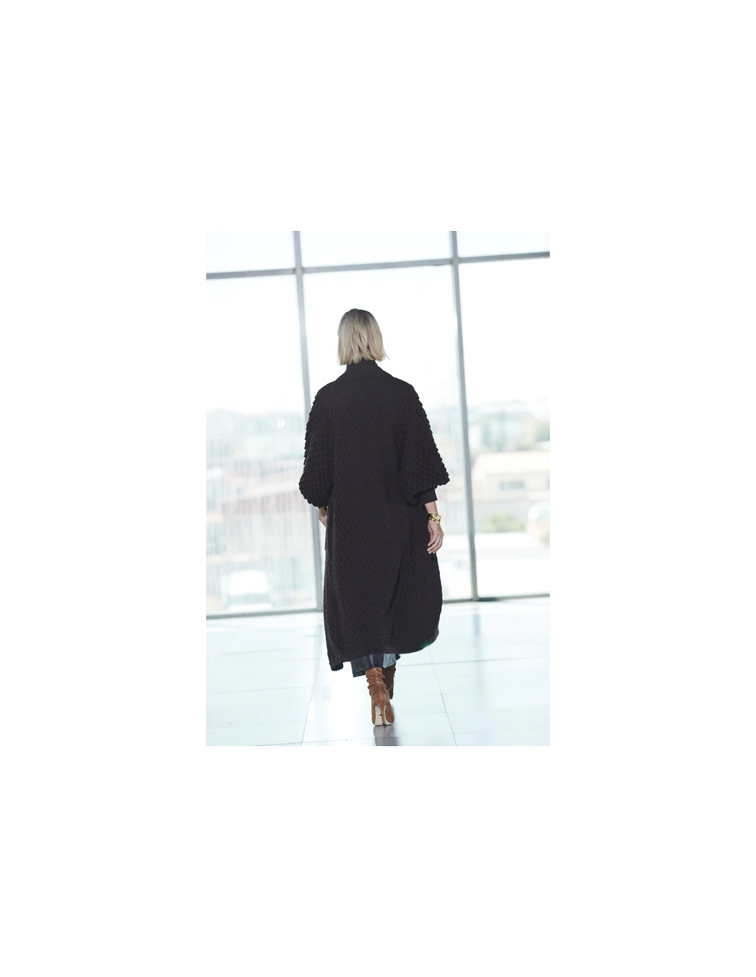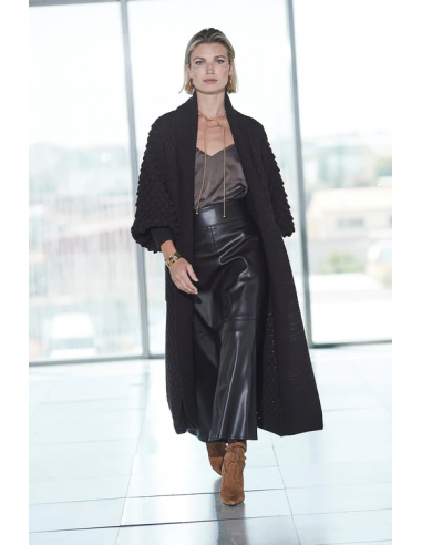 El Cardigan Largo Cacao Genevieve combina confort y distinción en una pieza artesanal excepcional. Confeccionado en mezcla de fibras (50% poliacrílico, 30% lana, 10% viscosa, 10% alpaca), presenta un jacquard en relieve que evoca escamas, creando una textura rica y visualmente compleja. Su diseño amplio y fluido ofrece libertad de movimiento y envuelve la silueta con elegancia natural. Cada cardigan Genevieve requiere 200 minutos de confección y 300 minutos adicionales de acabados a mano, garantizando un nivel superior de artesanía y detalle. Ideal para mujeres que buscan sofisticación, presencia y autenticidad en el lujo cotidiano, convirtiéndose en una pieza atemporal del guardarropa.