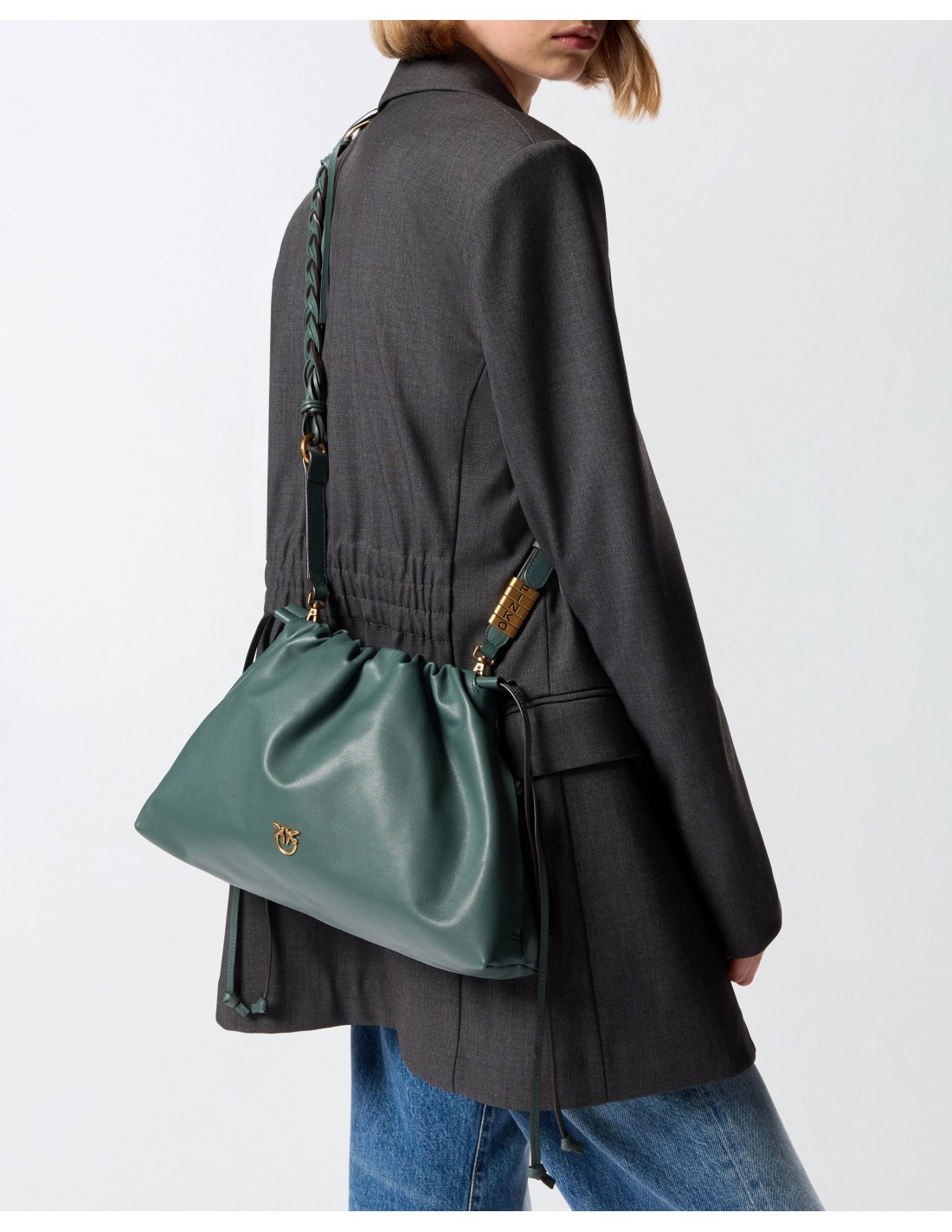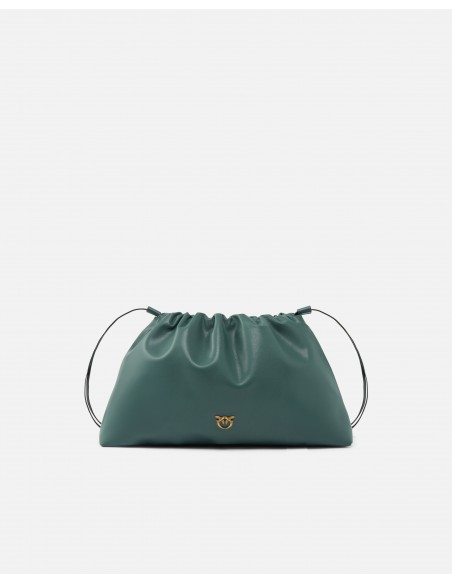 El Bolso Clutch de hombro grande Verde Love Birds de Pinko combina elegancia contemporánea y funcionalidad en un diseño sofisticado. Realizado en piel suave de becerro, presenta una silueta alargada y desestructurada con cierre de cordón ajustable, ideal para adaptarse a cualquier ocasión.