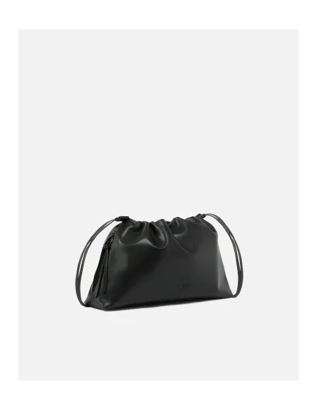 El Bolso Clutch de hombro grande Negro Love Birds de Pinko combina elegancia contemporánea y funcionalidad en un diseño sofisticado. Realizado en piel suave de becerro, presenta una silueta alargada y desestructurada con cierre de cordón ajustable, ideal para adaptarse a cualquier ocasión.