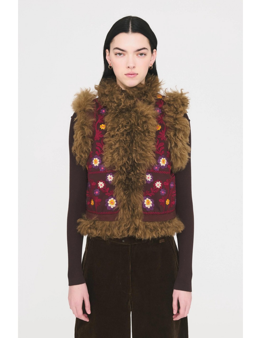 El Chaleco Húngaro de Antik Batik es una pieza artesanal de inspiración afgana que combina tradición y estilo contemporáneo. Confeccionado en color burdeos, destaca por su bordado floral hecho a mano en toda la prenda, aportando textura y riqueza visual. Los detalles en cuero de cordero en contraste refuerzan su carácter único, mientras que el forro de viscosa ultra suave garantiza confort absoluto.