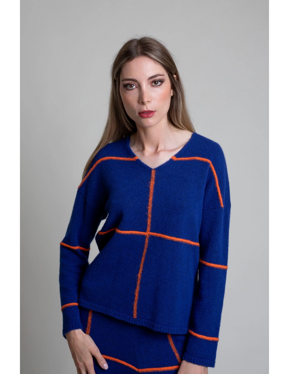 El Jersey Royal de Pisonero combina estilo moderno y comodidad en un diseño oversize ligero. Confeccionado en mezcla de fibras (60% acrílico, 14% poliamida, 10% poliéster, 8% lana, 8% viscosa), presenta un punto tricot con intarsia de cuadros a contraste, aportando textura y dinamismo al look. Su corte ligeramente oversize, mangas largas y cuello pico lo hacen versátil y fácil de combinar con diferentes estilos, ofreciendo confort y elegancia en cualquier ocasión.