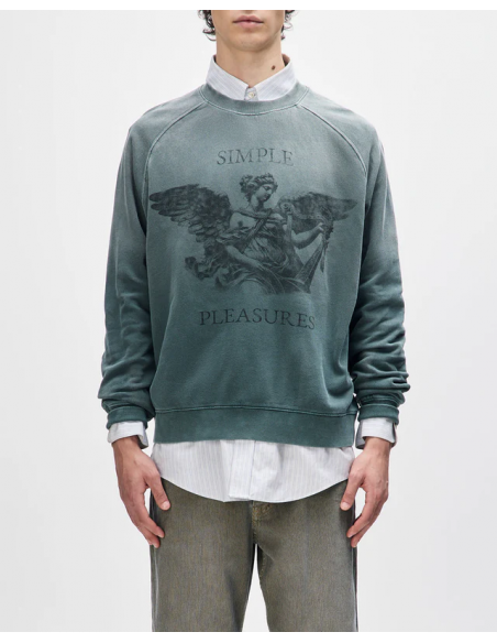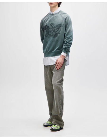 Con un corte oversize y una confección en felpa cepillada de algodón orgánico, ofrece una comodidad superior y una caída relajada que transmite naturalidad y confianza. Su acabado teñido con tratamiento de envejecido y desteñido le otorga un aspecto vivido y una pátina única en cada prenda, haciendo que no existan dos iguales.