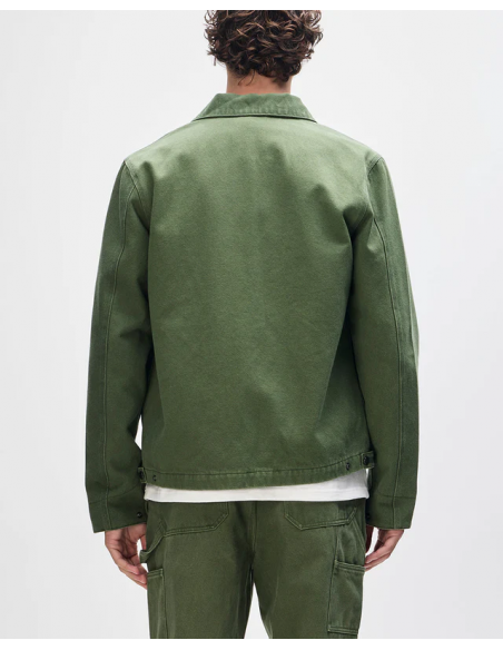 La Workwear Overdye Jacket de Deus Ex Machina es una prenda que encarna la esencia del workwear clásico reinterpretado con un toque contemporáneo. Inspirada en el espíritu del denim envejecido y el oficio artesanal, esta chaqueta celebra la autenticidad, la durabilidad y la belleza del paso del tiempo.