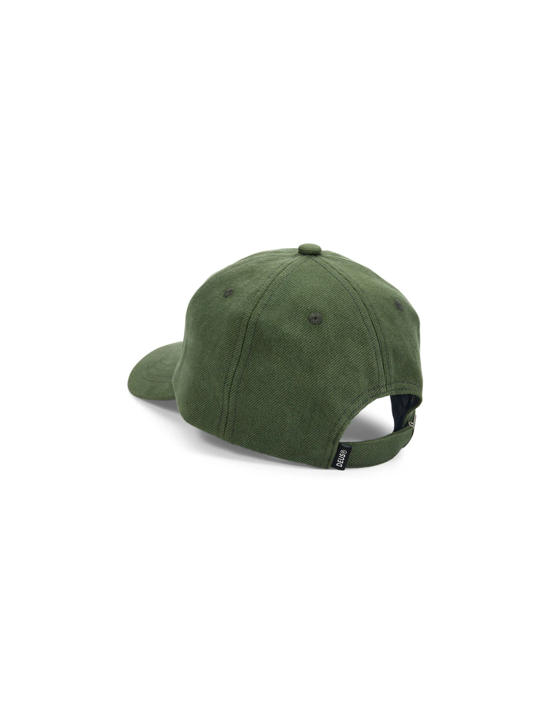 Su diseño clásico de seis paneles garantiza comodidad y un ajuste perfecto, mientras que el parche frontal de sarga con el logo Deus añade el toque artesanal característico de la marca. El cierre ajustable del mismo tejido permite personalizar el ajuste con estilo.