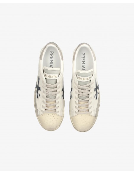 Las zapatillas STEVEN 7633 de Premiata reinterpretan la elegancia deportiva con una silueta moderna y detalles de alta calidad. Confeccionadas en piel de becerro combinada con materiales técnicos, destacan por su estética minimalista en tonos blanco roto y beige, perfecta para quienes buscan un estilo limpio y versátil.