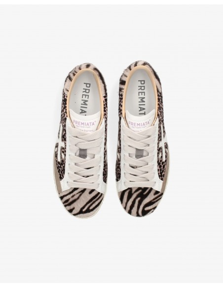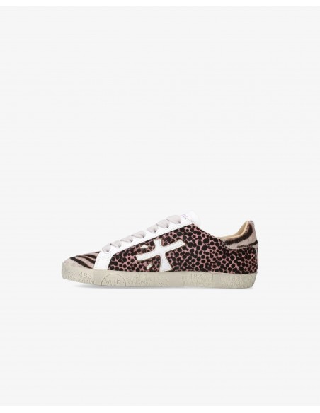 Las zapatillas STEVEND 6935 de Premiata combinan diseño icónico y vanguardista en una silueta que refleja el estilo urbano contemporáneo de la firma italiana. Confeccionadas en piel de potro con inserciones de gamuza beige, estas sneakers destacan por su textura sofisticada y su contraste de materiales.