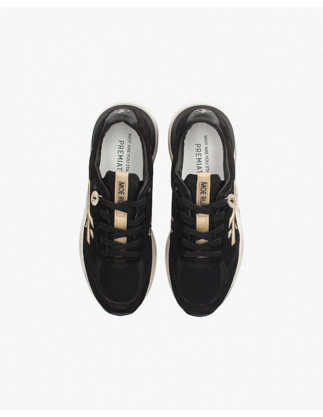 Las MOERUND 7799 de Premiata representan la perfecta fusión entre elegancia y funcionalidad. Confeccionadas en piel negra de alta calidad, destacan por su logo dorado lateral, que aporta un toque distintivo y lujoso sin renunciar a la sobriedad.