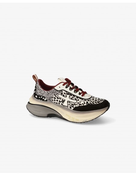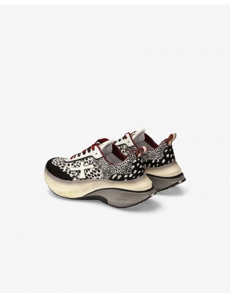 Las HILL 7858 de Premiata reinterpretan el estilo deportivo con un toque sofisticado y urbano. Su combinación en negro y blanco con acabado animalier aporta carácter y dinamismo a esta zapatilla contemporánea, perfecta para quienes buscan destacar con elegancia.