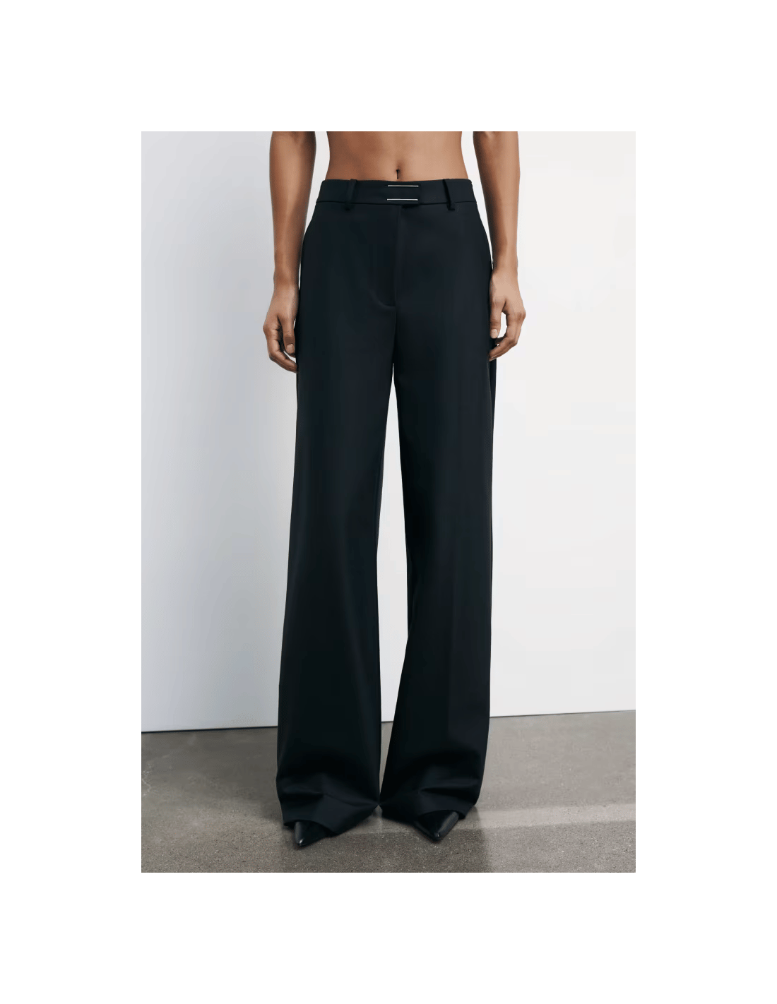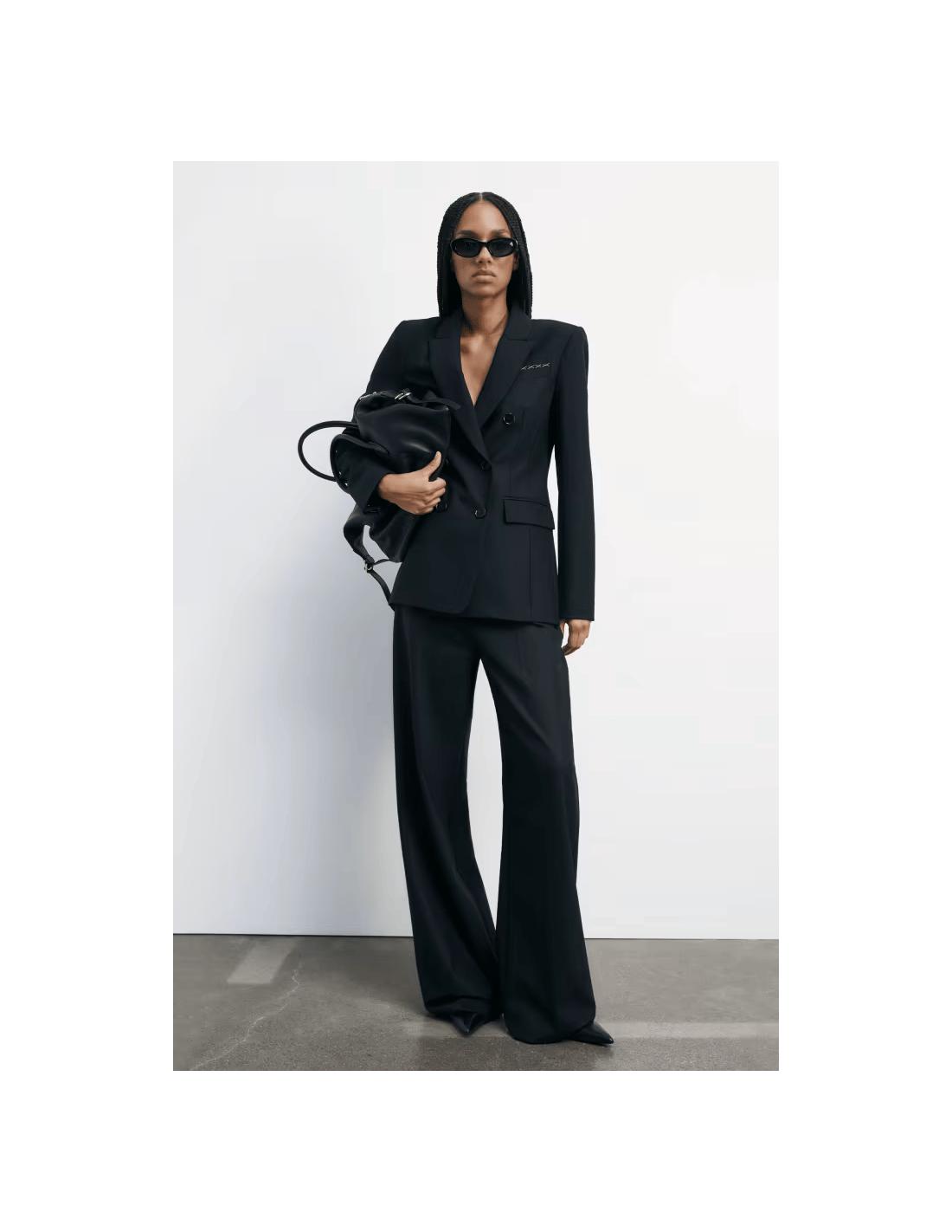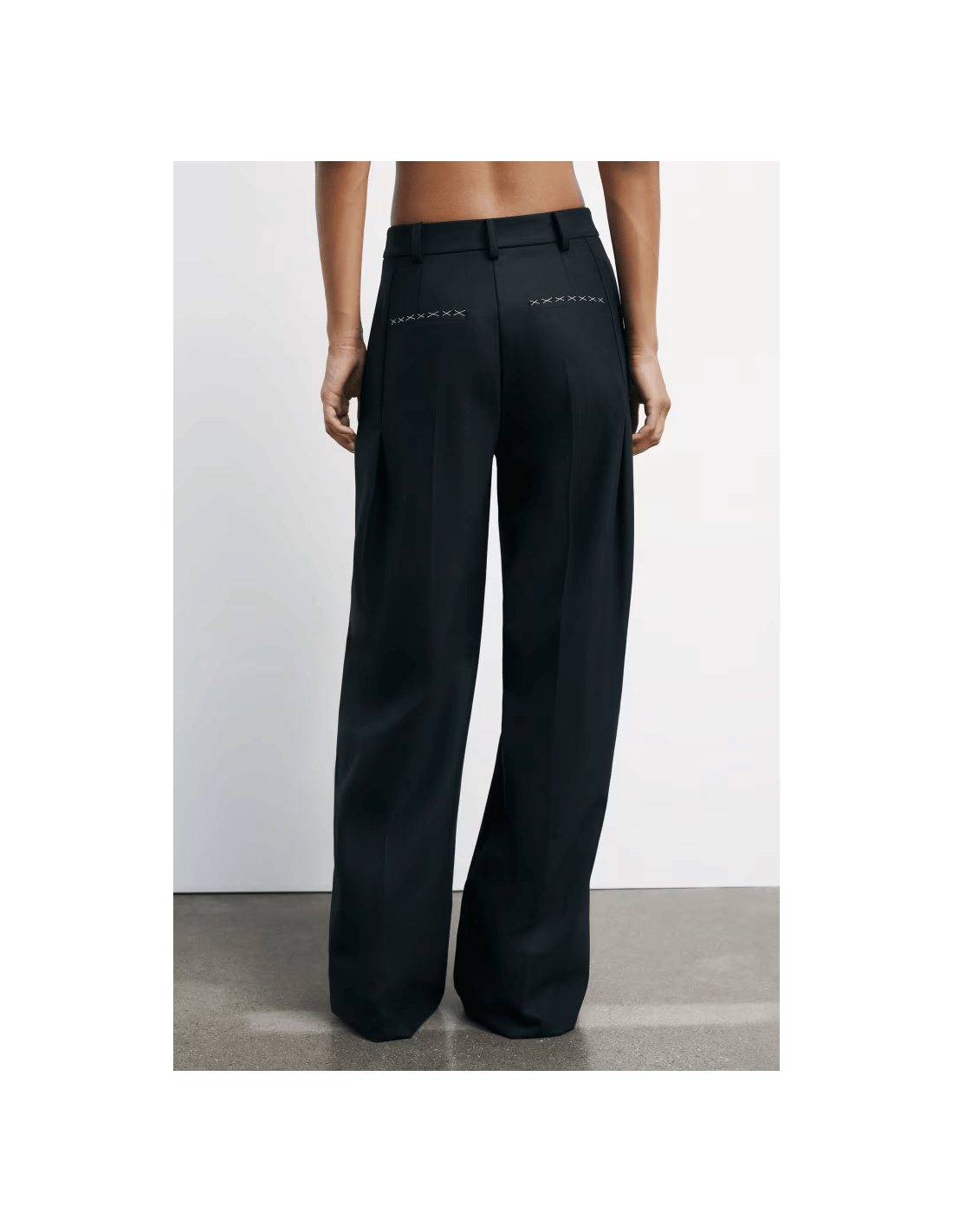 El Pantalón "Essential" Palazzo negro de Patrizia Pepe combina estilo y comodidad con su corte palazzo y talle normal, ofreciendo una silueta fluida y elegante. Confeccionado en gabardina de lana elástica, garantiza confort y libertad de movimiento. Los detalles como el botón metálico con diseño cuadrado y las costuras personalizadas en el bolsillo trasero aportan un acabado sofisticado y distintivo. Perfecto para looks urbanos o conjuntos más formales.