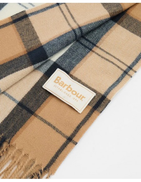 La Hailes Tartan Scarf Wrap de Barbour combina calidez y diseño clásico en una pieza envolvente ideal para el invierno. Con 100% poliéster de tacto súper suave, esta bufanda ofrece un confort excelente y cobertura generosa para mantener el cuerpo protegido del frío. Su diseño en tartán tradicional se completa con flecos en los extremos y una etiqueta con logo Barbour en la parte trasera, aportando un toque distintivo y elegante.