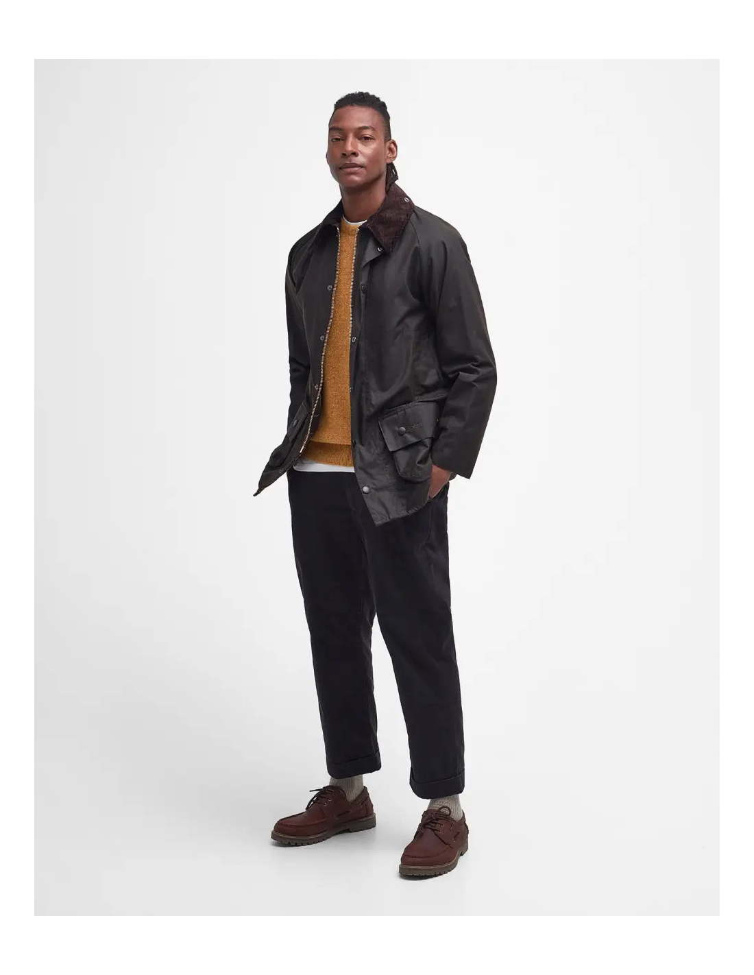 La Classic Beaufort® Waxed Jacket de Barbour, diseñada en 1983 por Dame Margaret Barbour, es una de las chaquetas más emblemáticas de la firma británica. Confeccionada en algodón encerado Sylkoil de 6 oz, ofrece resistencia al viento y la lluvia, manteniendo un estilo elegante y funcional. Su diseño incluye cuello de pana, forro interior de algodón con tartán clásico, cierres a presión y cremallera bidireccional, así como amplios bolsillos inferiores con solapa, bolsillos calientamanos forrados en moleskin y un bolsillo trasero tipo caza. Versátil y duradera, es ideal tanto para el campo como para la ciudad, y puede combinarse con un forro acolchado o capucha opcional.