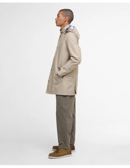 La Chelsea Waterproof Mac de Barbour combina el estilo británico clásico con la funcionalidad contemporánea. Confeccionada en tejido impermeable de sarga de algodón y poliamida, garantiza protección frente a la lluvia sin renunciar a la elegancia. Su diseño incluye capucha desmontable, cierre frontal con cremallera y botones a presión, y bolsillos laterales con tapeta y broche. El interior presenta un forro acolchado para mayor calidez y un canesú interior de tartán que aporta el sello distintivo de la firma. Ideal para el día a día o escapadas urbanas, esta prenda combina confort, resistencia y estilo atemporal.