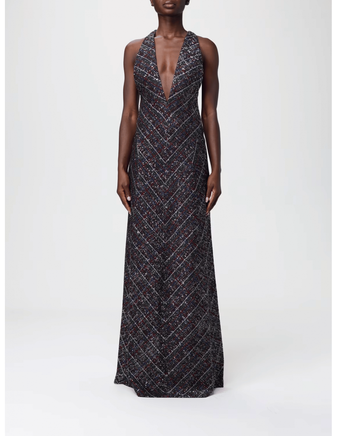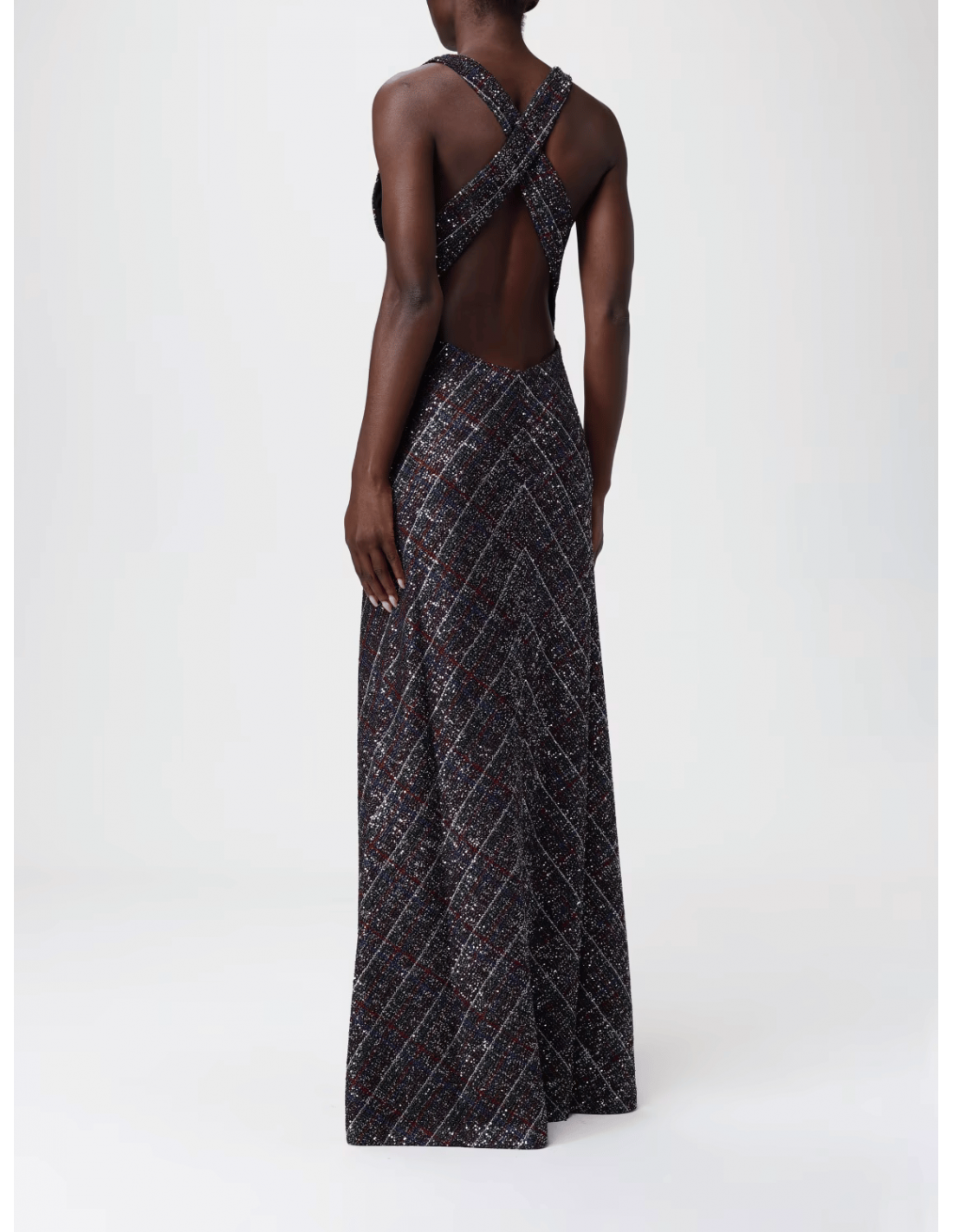 El vestido largo de lentejuelas estampado de Missoni combina el espíritu sofisticado y artístico de la firma italiana con un diseño lleno de movimiento y luz. Confeccionado en un tejido fluido con acabado brillante de lentejuelas, presenta un estampado multicolor característico de Missoni que realza su silueta. La espalda cruzada aporta un toque sensual y contemporáneo, equilibrando la elegancia del largo con una estructura ligera y femenina. Ideal para ocasiones especiales o eventos de noche, este vestido encarna el lujo artesanal y la estética vibrante de la maison.