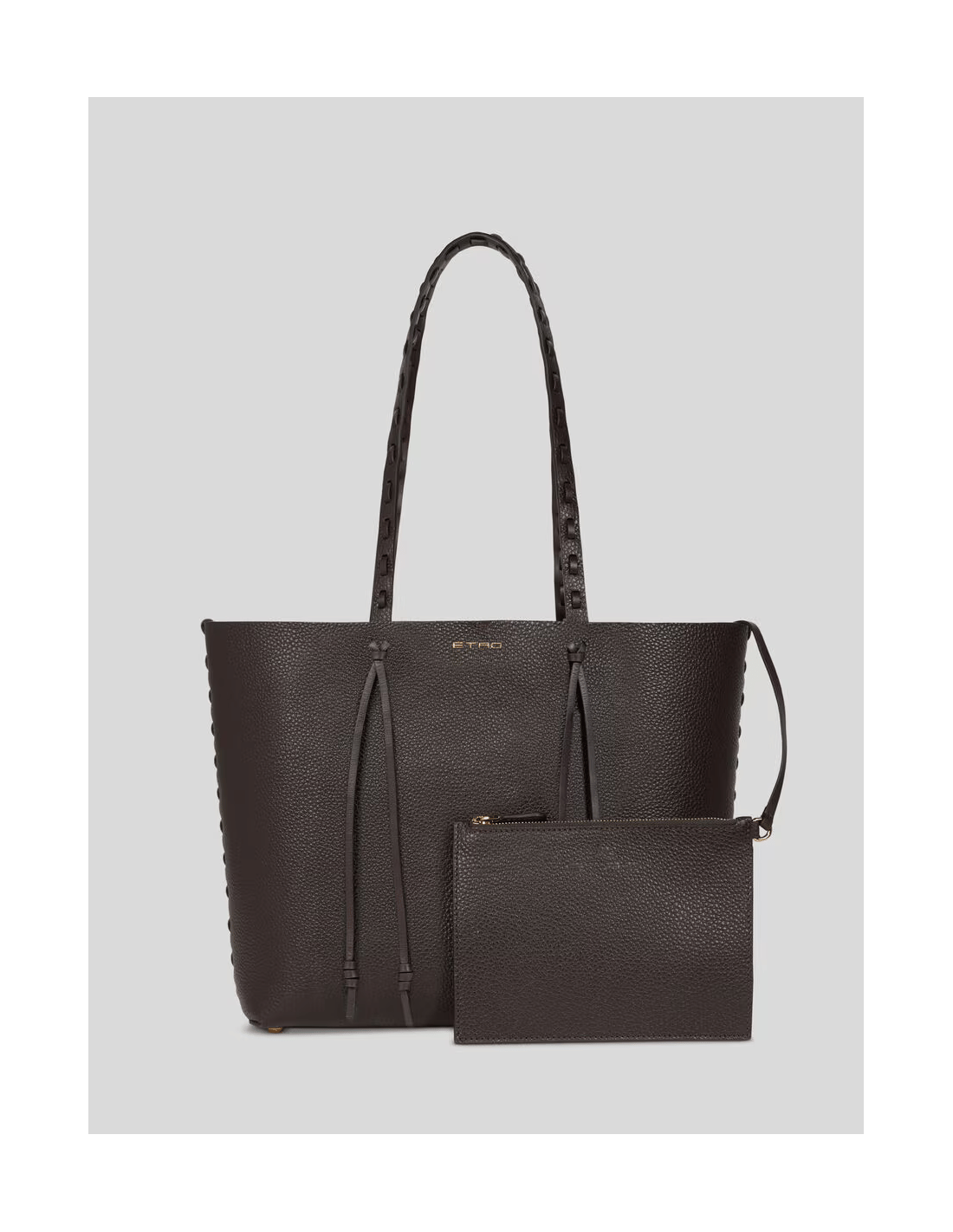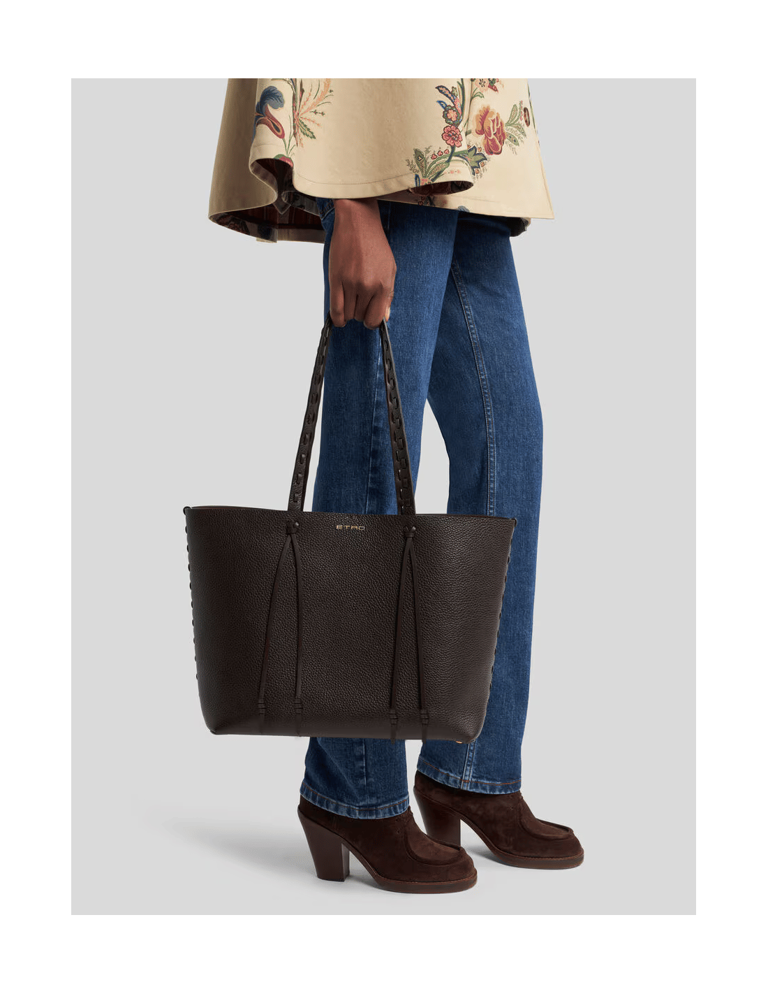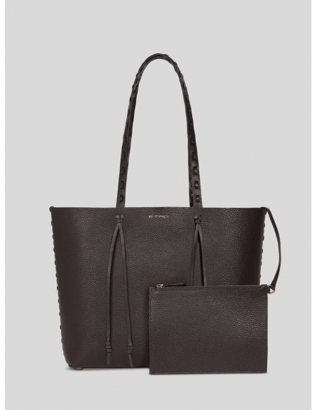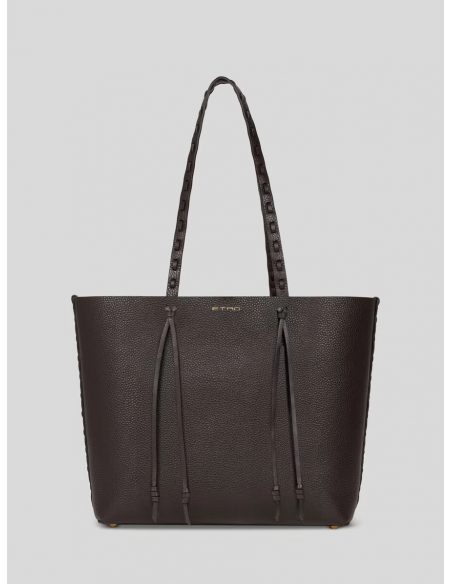El Bolso Shopper Etro Essential Mediano refleja la elegancia artesanal y el estilo atemporal de la maison italiana. Confeccionado en piel abatanada de color liso, presenta un diseño distintivo con enhebrados decorativos y asas rematadas con cordones y nudos, símbolo del refinado trabajo manual de Etro. Su interior de ante aporta un acabado suave y sofisticado, mientras que los accesorios metálicos en tono dorado añaden un toque de luminosidad. Incluye una minipochette extraíble, ideal para mantener los esenciales organizados. Los pies metálicos en la base garantizan estabilidad y durabilidad, haciendo de este shopper una pieza versátil, práctica y con una elegancia natural.
