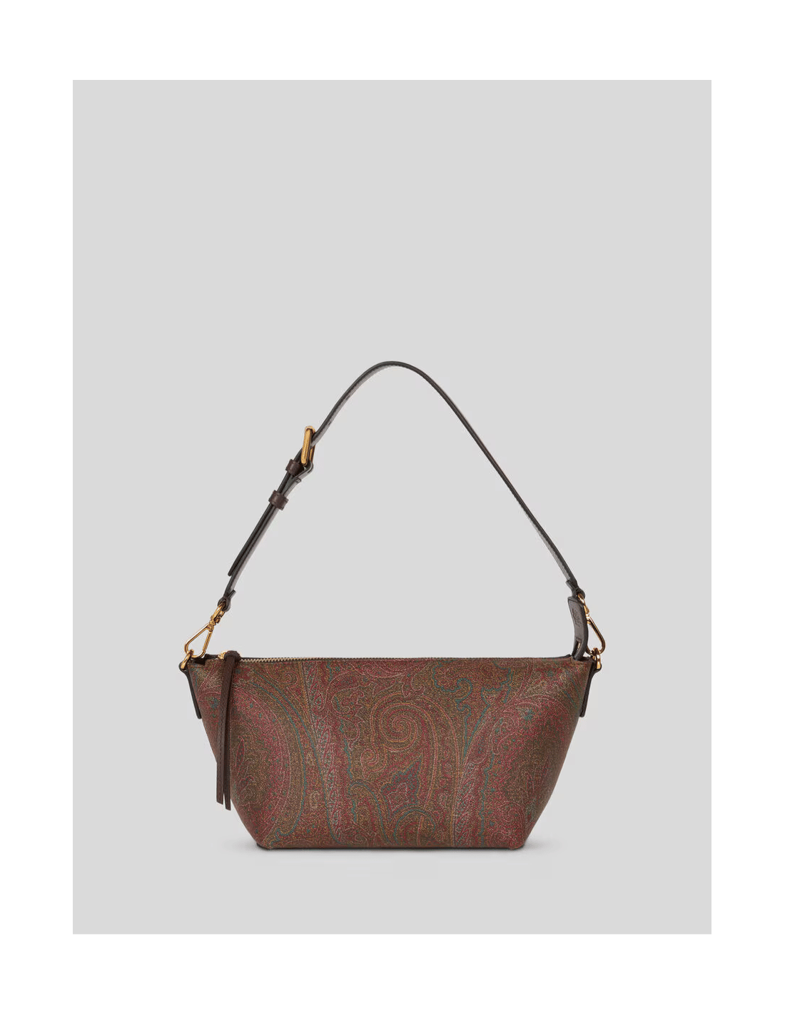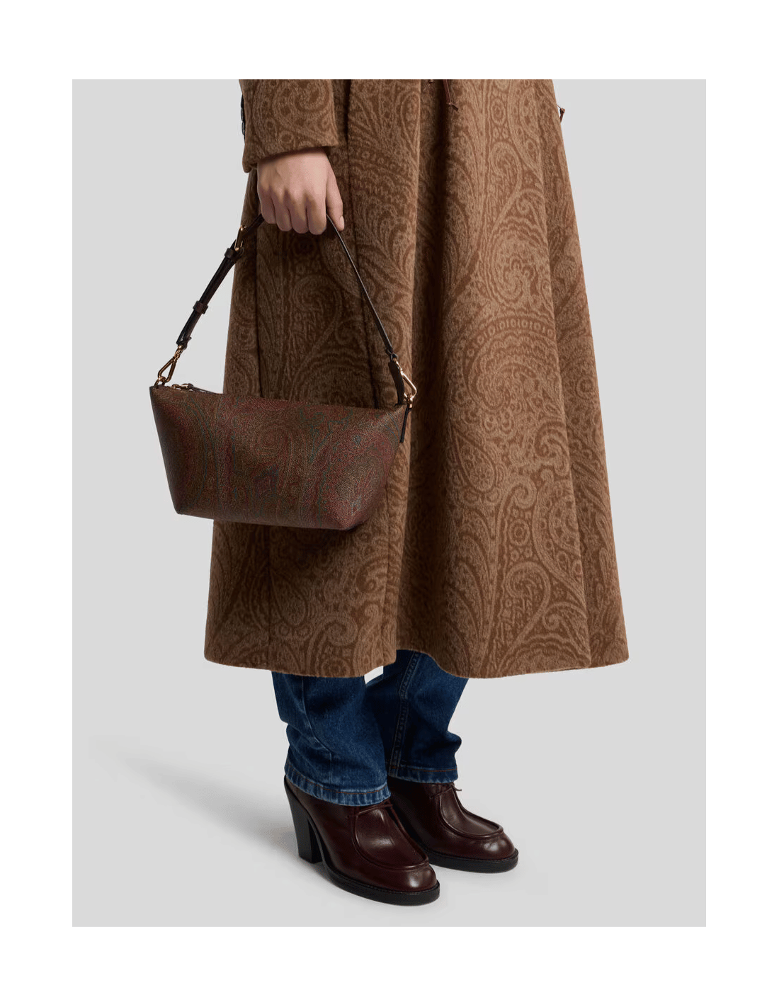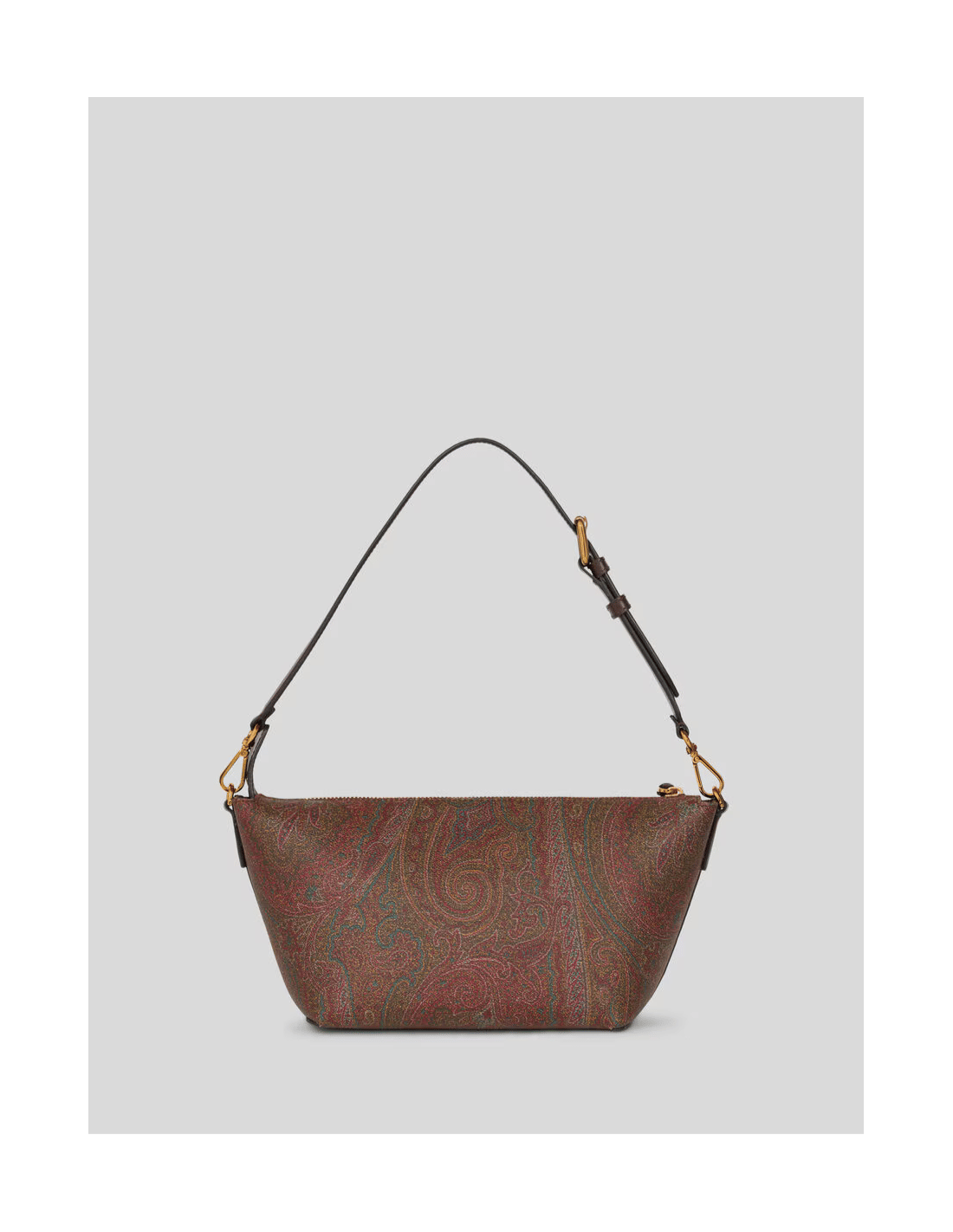 Versátil y sofisticado, puede llevarse de mano, al hombro o cruzado gracias a su asa y correa extraíbles e intercambiables. Los detalles metálicos en acabado dorado aportan un brillo sutil, reafirmando el carácter icónico de Etro.