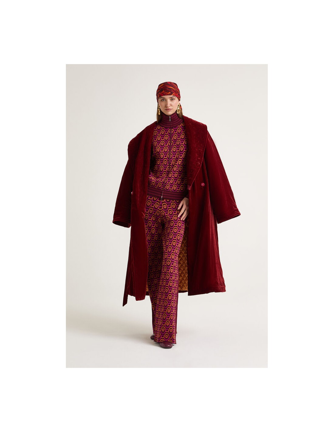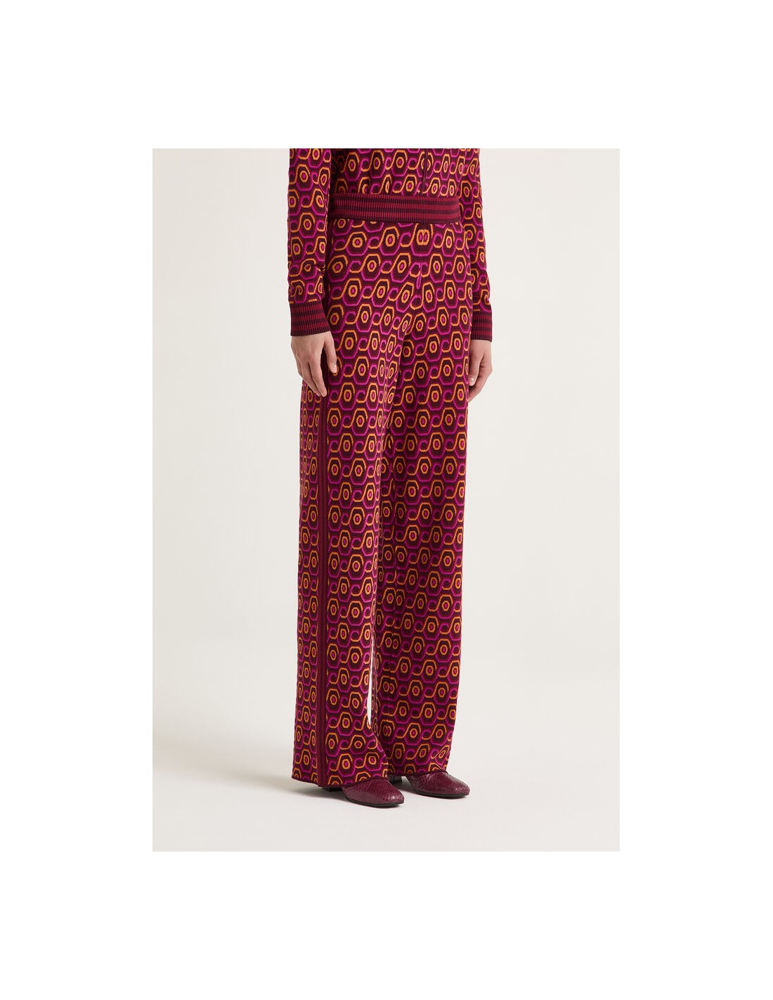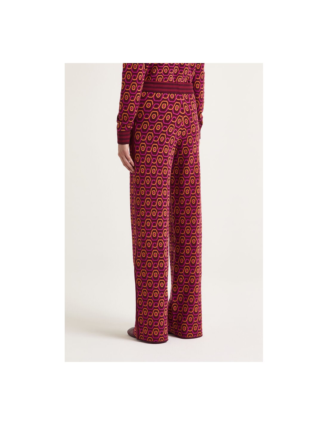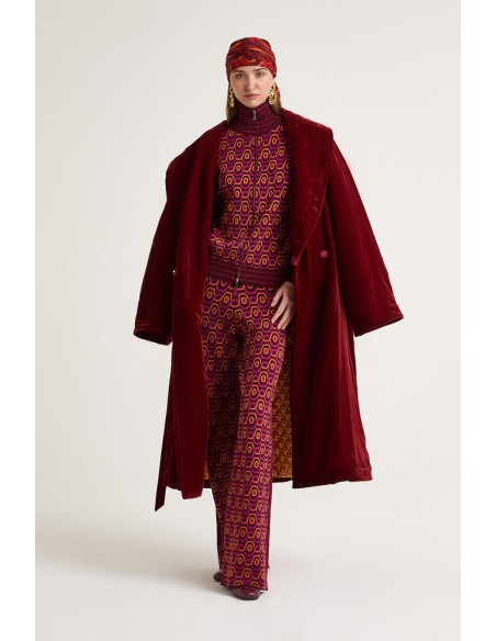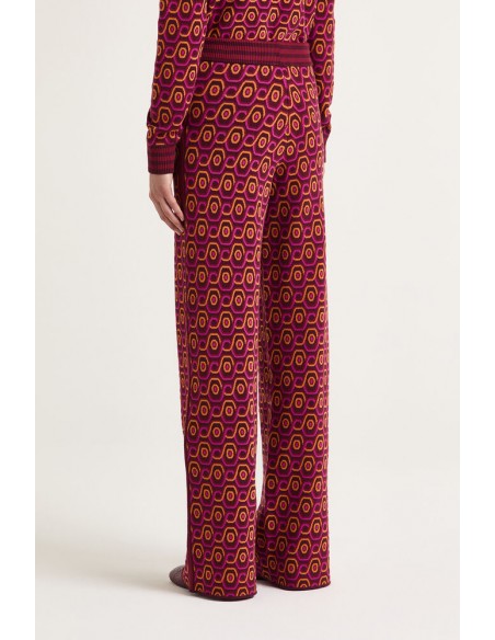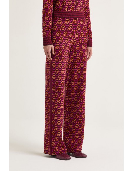 El Pantalón Rolling Chain es una prenda que combina sofisticación y estilo contemporáneo. Confeccionado en jacquard 100% poliéster, presenta un diseño óptico de cadenas fluidas que aporta dinamismo y personalidad al look.