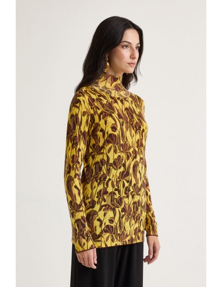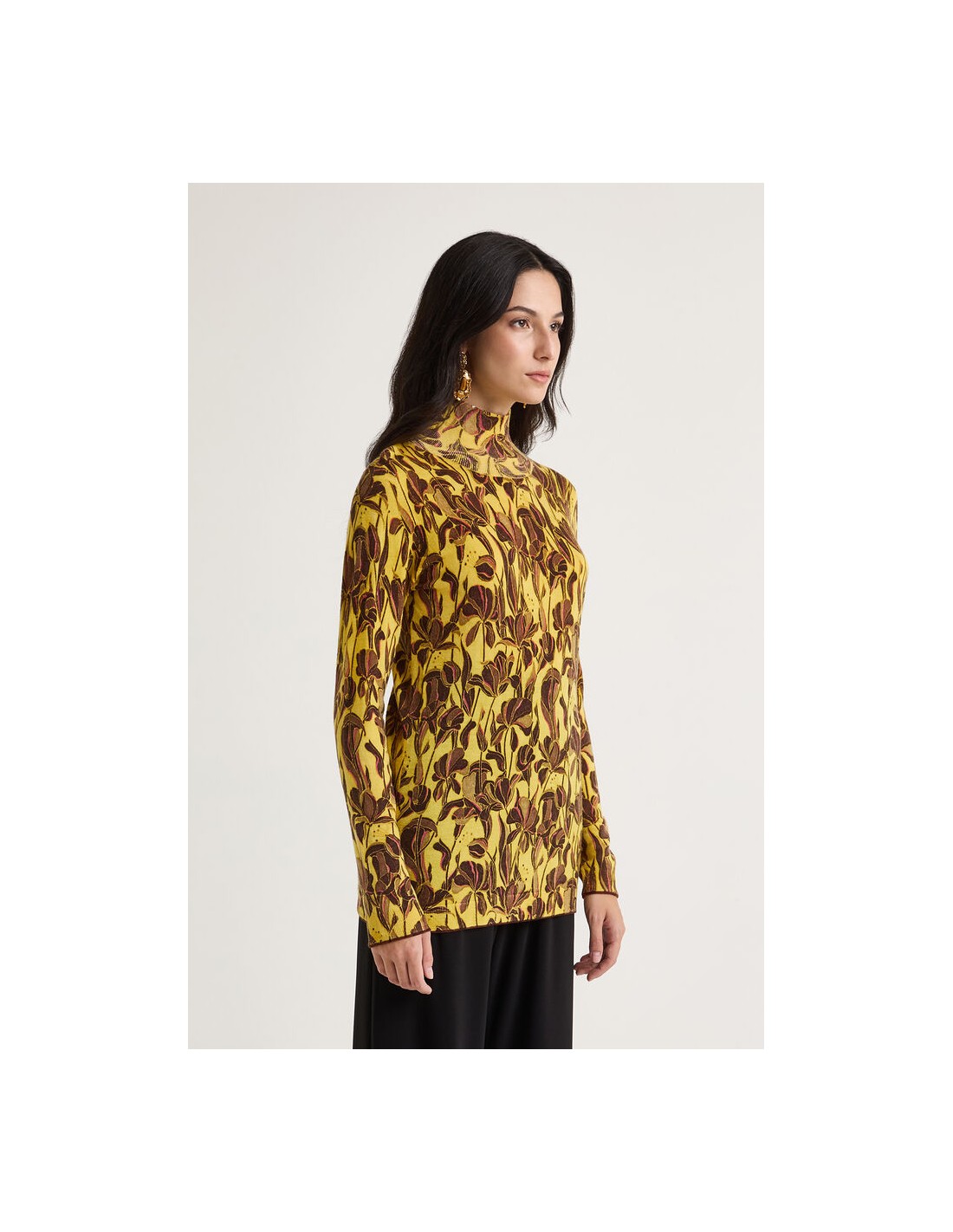 El Printed Knit Punto de Maliparmi es un suéter de cuello alto que combina calidez, estilo y feminidad en una sola prenda. Confeccionado en 72% viscosa y 28% poliéster, ofrece suavidad al tacto y un ajuste cómodo para los días más fríos.