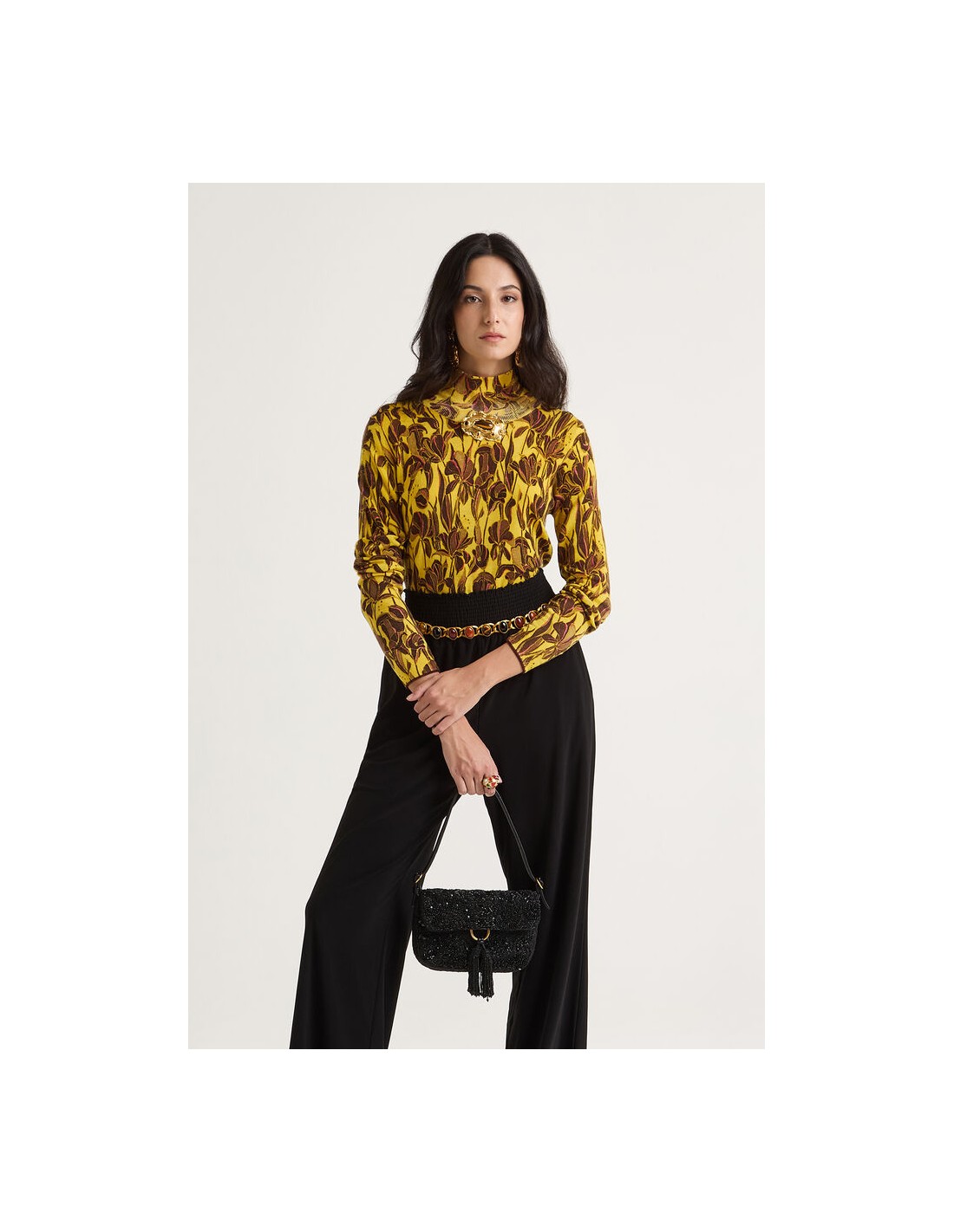Su principal protagonista es el exclusivo estampado Lily’s Ballet, un motivo de lirios danzantes que aporta movimiento, poesía y color a cualquier look. Ideal para combinar con pantalones o faldas, este suéter es perfecto para crear estilismos sofisticados y modernos sin renunciar al confort.