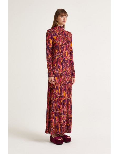 El jersey estampado con lirios Lily’s Ballet convierte este vestido en un aliado perfecto para ocasiones especiales, ofreciendo un toque romántico y distintivo. Su forro asegura caída y comodidad, mientras que la mezcla de viscosa y seda proporciona suavidad y un tacto lujoso sobre la piel.