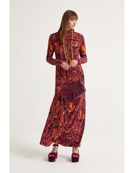 El Vestido Lily’s Ballet de Maliparmi es una prenda elegante y sofisticada que combina comodidad, fluidez y feminidad. Con cuello alto y corte regular hasta la cintura, se abre en una falda en A que sigue y realza los movimientos, aportando ligereza y gracia al caminar.