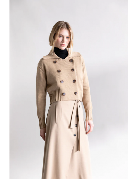 Una pieza versátil para quienes buscan una prenda de punto con estructura, presencia y un estilo atemporal que funciona tanto en looks casuales como en capas de entretiempo más elaboradas.