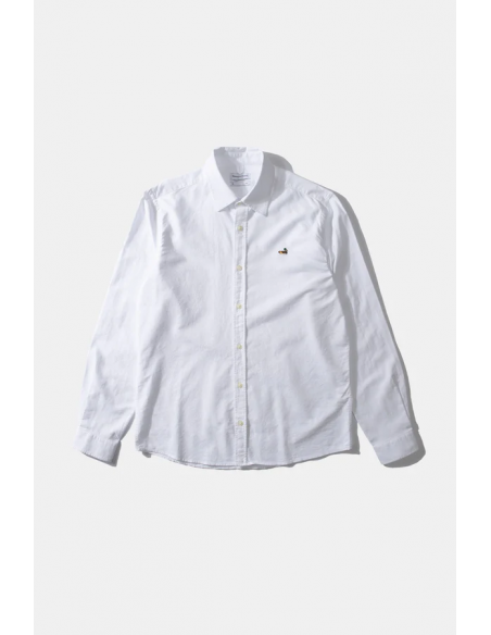 La camisa BD Blanca es una prenda esencial en el armario masculino. Confeccionada en algodón 100% de alta calidad, destaca por su textura tipo Oxford y su corte regular que ofrece comodidad y estructura a partes iguales.