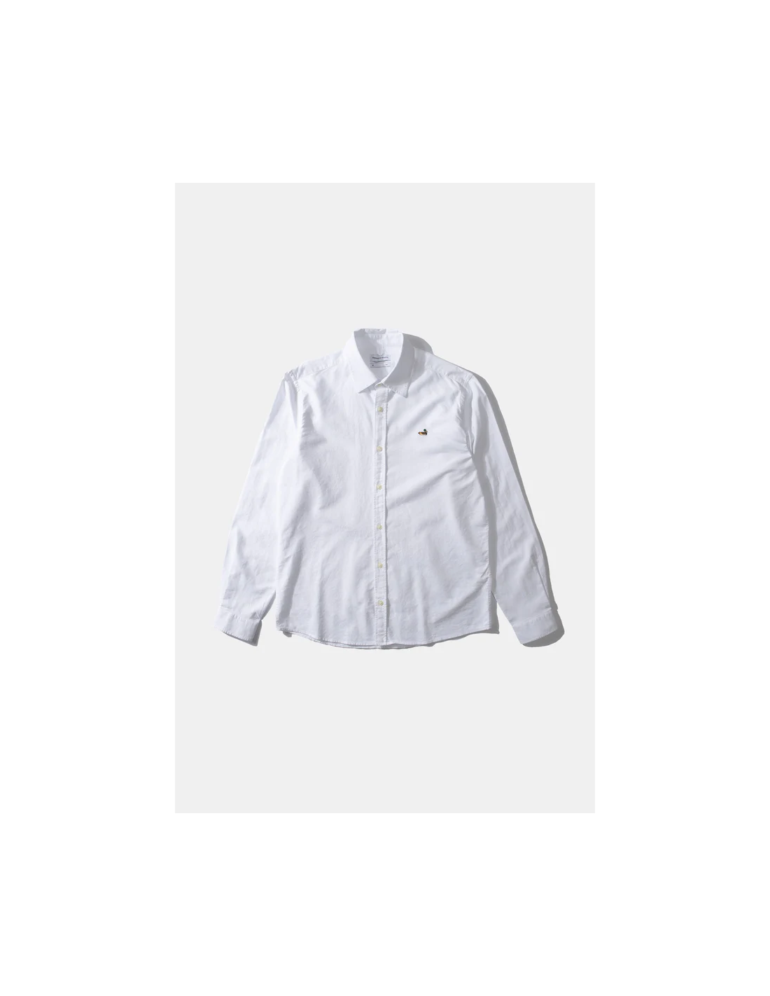 Su diseño incorpora el clásico cuello button down, que aporta un aire desenfadado y elegante, junto al logotipo bordado en el pecho, símbolo de la identidad contemporánea de Edmmond Studios. Ideal tanto para looks casuales como para ocasiones más formales, esta camisa blanca redefine la simplicidad con estilo.
