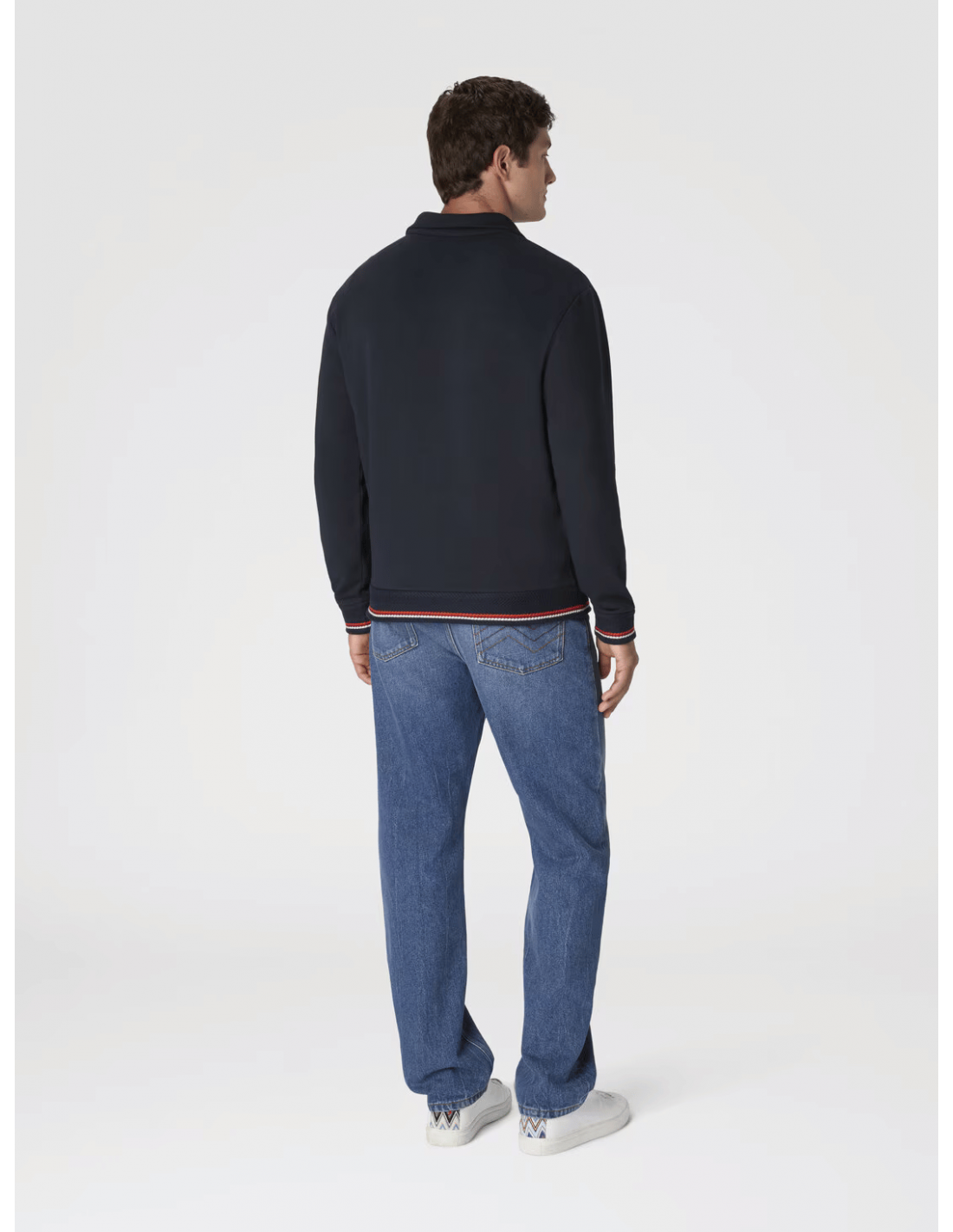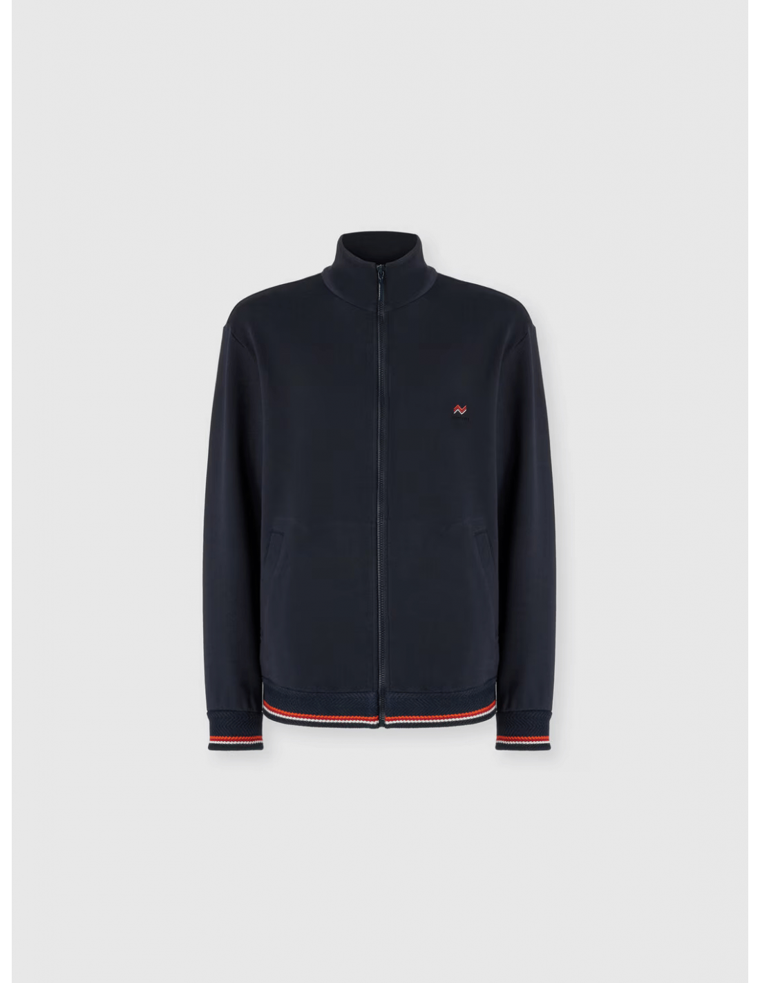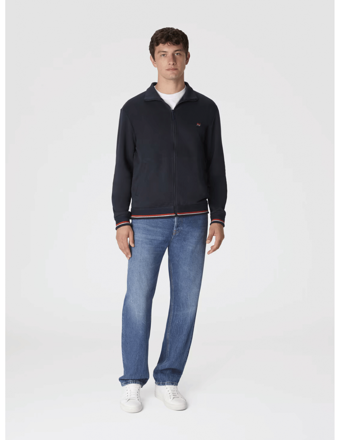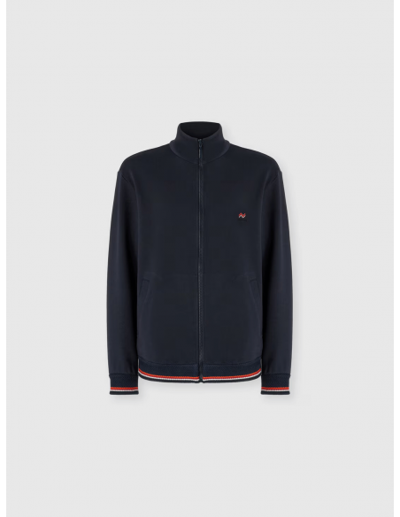 Sudadera abierta de cuello alto con cremallera, bordados de punto y logo: Esencial pero cuidada en los detalles, esta sudadera abierta con cremallera y cuello alto para hombre en algodón 100% está acabada con cuello y puños de punto, que añaden un toque de estilo al diseño limpio de la prenda. El logo bordado firma el look con discreción, haciéndola ideal para una elegancia casual y contemporánea.