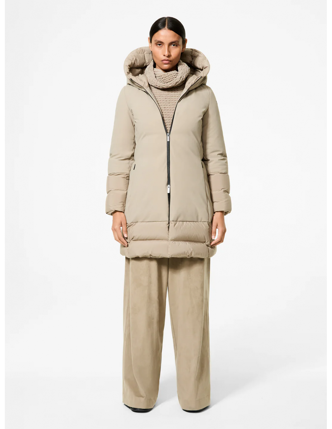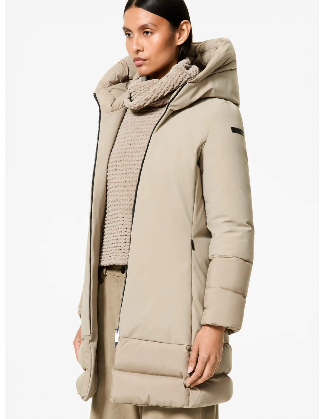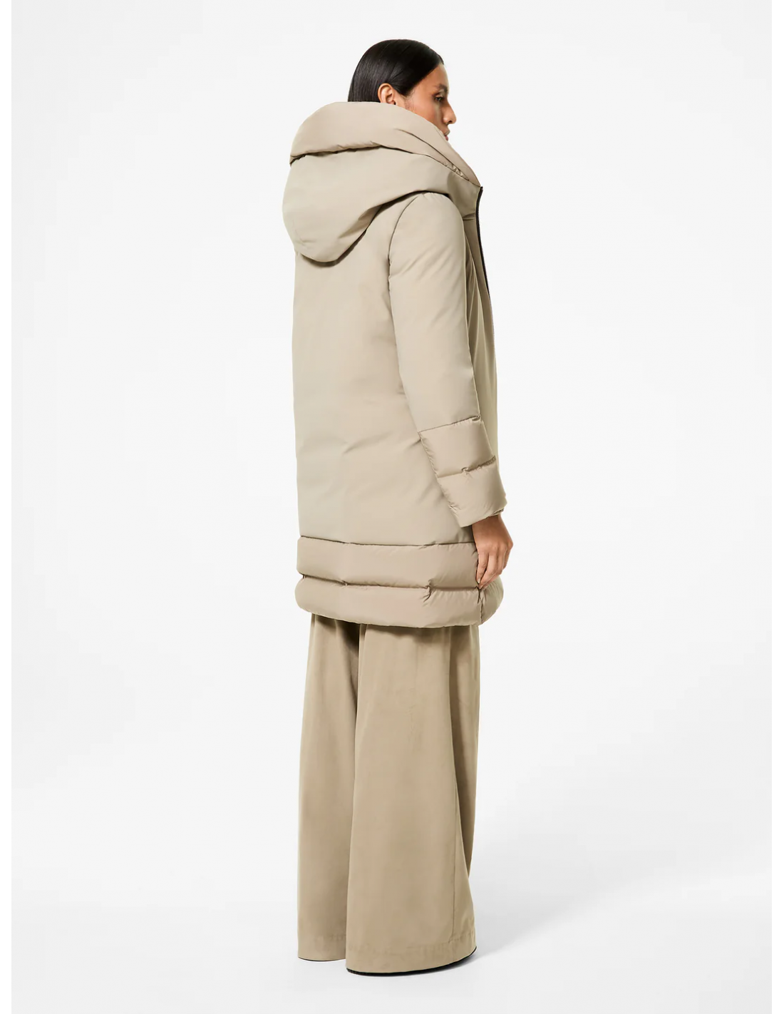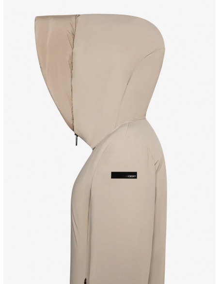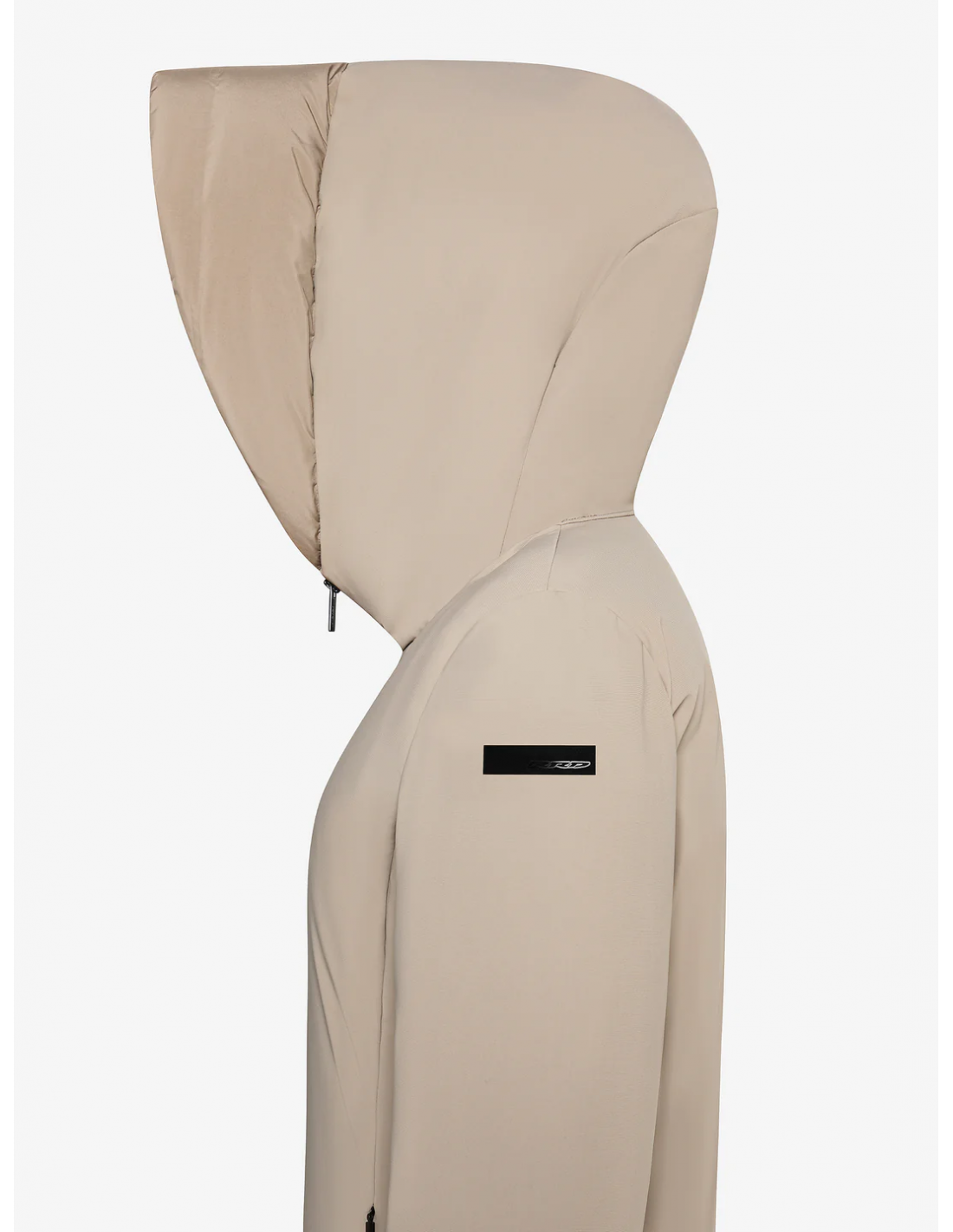 Confeccionado en Stratofabric#3 con exterior exclusivo SURFLEX®, garantiza impermeabilidad, transpirabilidad y una textura suave y mate. La capucha acolchada enmarca el rostro con sofisticación, sumándose al diseño limpio que se completa con una cremallera frontal de doble cursor y bolsillos laterales con cremalleras invisibles. Un abrigo versátil y moderno para quienes buscan prestaciones técnicas con una elegancia atemporal.