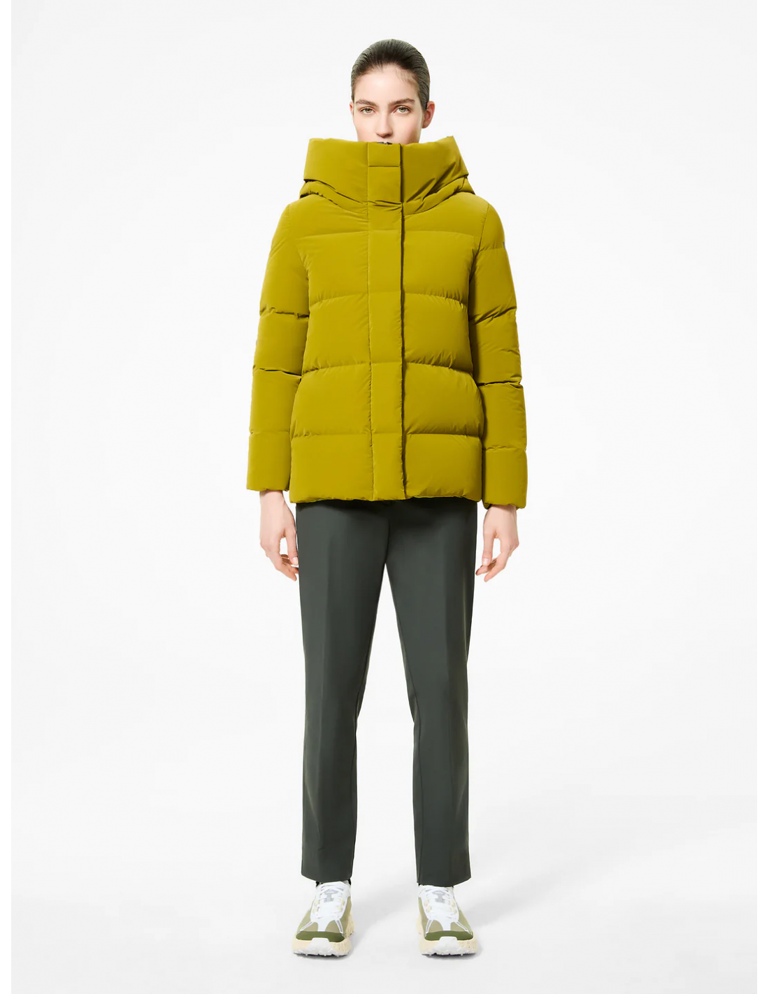 El Superduck! Tubic 14 Hood Wom Jkt Acid Yellow de RRD es una reinterpretación moderna y dinámica del clásico plumífero de invierno. Su corte boxy y su diseño tipo cocoon aportan un estilo contemporáneo y juvenil, mientras que su longitud a la cintura lo convierte en una prenda versátil y favorecedora. El tejido exterior, recubierto de silicona, presenta un acabado sutilmente irisado que aporta sofisticación y una textura suave al tacto. Sus canales tubic termo-soldados contienen un relleno 90/10 de pluma y plumón de pato, extremadamente cálido y ligero, ideal para las temperaturas más frías. La capucha amplia y envolvente refuerza su carácter protector, mientras que la cremallera termo-soldada queda oculta bajo una tapeta con botones a presión para un acabado limpio y minimalista. Los bolsillos laterales, discretamente integrados, mantienen la estética depurada del diseño.