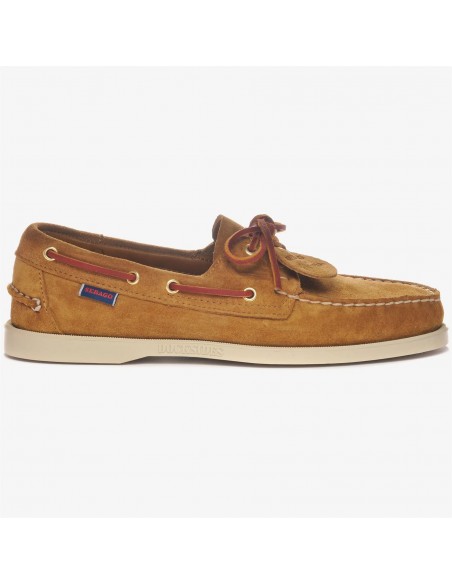 Mocasín náutico Portland Artisan de Sebago, una reinterpretación artesanal del icónico boat shoe de la marca. Confeccionado en suave ante italiano de alta calidad, presenta un diseño sin forro que aporta una sensación más ligera y fresca. Su construcción destaca por el cosido a mano en el empeine y los característicos cordones laterales de corte cuadrado que refuerzan su estética náutica clásica. La suela de goma antideslizante garantiza un agarre óptimo en diferentes superficies. Un zapato náutico elegante y atemporal que combina tradición artesanal y comodidad moderna.