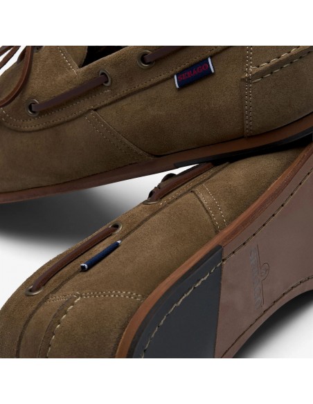 Sebago Owen boat shoes, una reinterpretación contemporánea de un clásico atemporal del archivo de la marca. Confeccionados en suave ante italiano de alta calidad, destacan por su construcción Strobel que aporta mayor flexibilidad y ligereza. El acabado tratado del cuero ofrece un auténtico efecto vintage, mientras que el cosido artesanal en el empeine refleja la tradición y el savoir-faire de Sebago. El sistema de cordones de cuero 360° evoca su herencia náutica, y la suela flexible de cuero y goma garantiza confort, soporte y agarre. Un zapato náutico elegante y versátil, ideal para un estilo casual sofisticado.