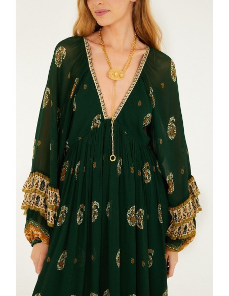 Descubre el vestido maxi Green Ayla Long Sleeve Ruffled de FARM Rio, una prenda que combina elegancia, fluidez y un espíritu vibrante. Su diseño en tono verde, inspirado en la naturaleza exuberante, aporta frescura y personalidad a cualquier look.