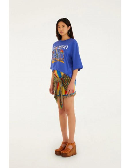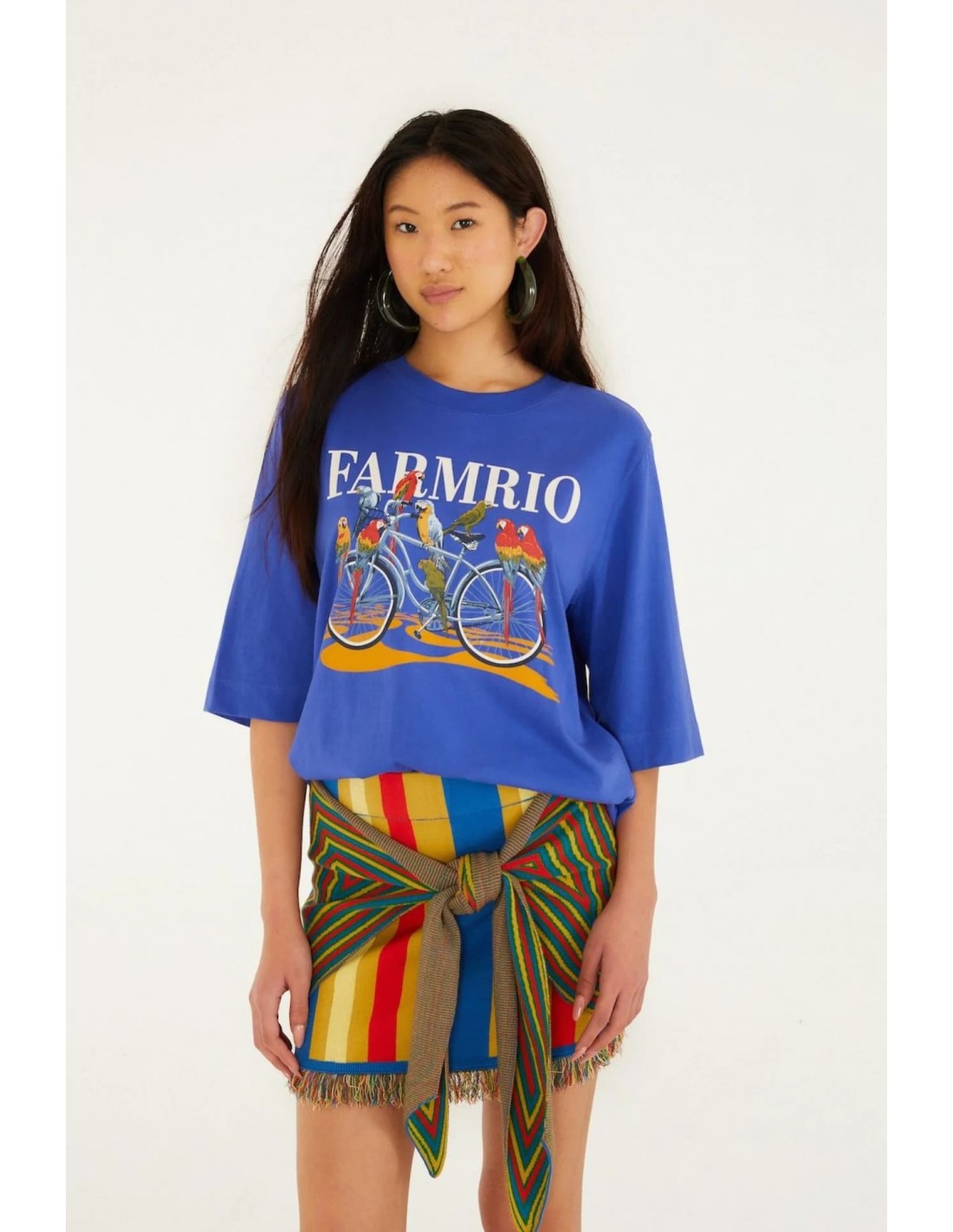 Añade un toque de color y personalidad a tu armario con la camiseta Bike Birds Box en azul de FARM Rio. Confeccionada en algodón suave y transpirable, esta camiseta destaca por su diseño gráfico vibrante con aves sobre una bicicleta y el logo de la marca en el pecho, aportando un estilo fresco y original.