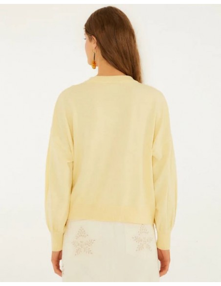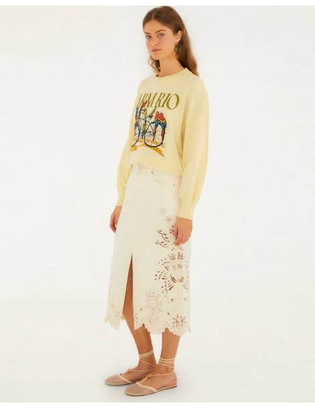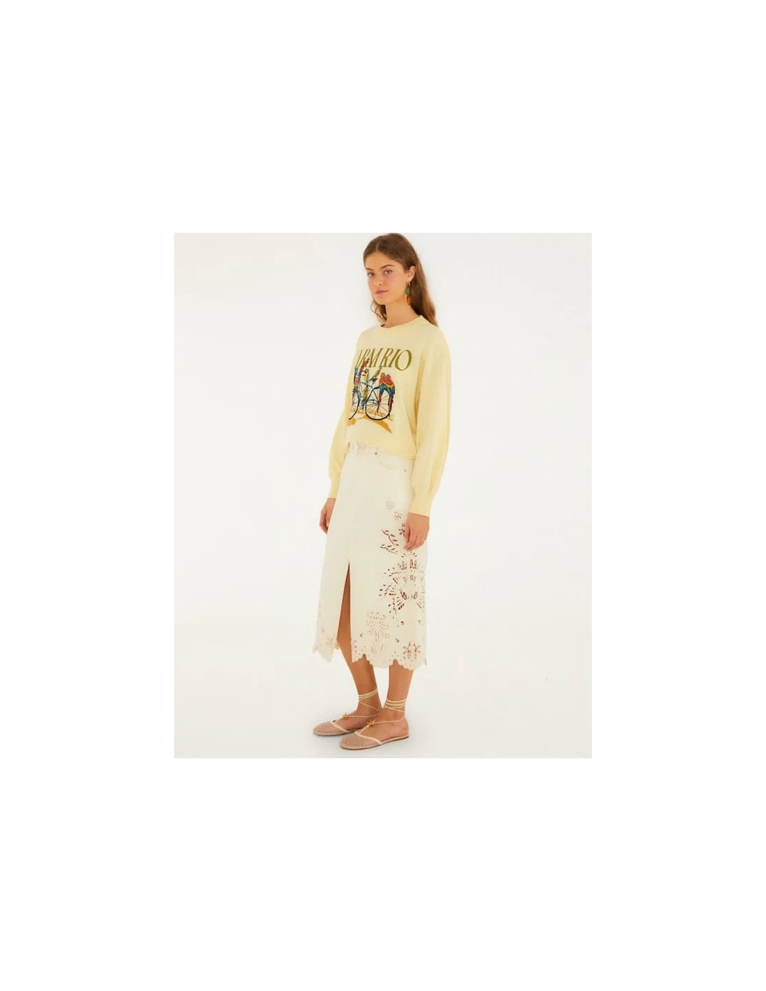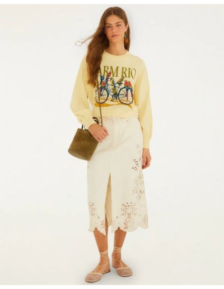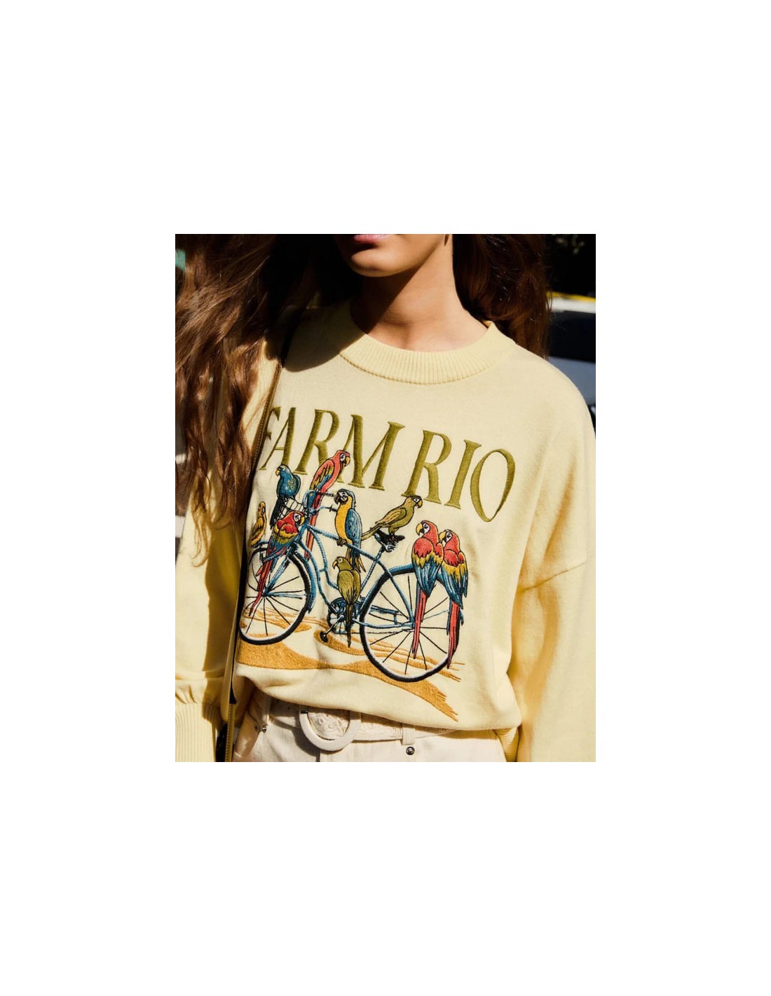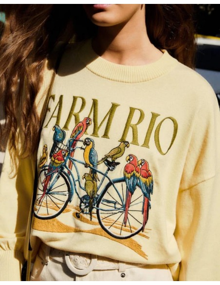 Descubre el jersey Yellow Birds Bicycle Embroidered de FARM Rio, una prenda alegre y llena de color que refleja el espíritu vibrante de la marca. Confeccionado en un suave tejido de punto, combina comodidad y diseño en una pieza única.