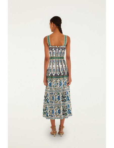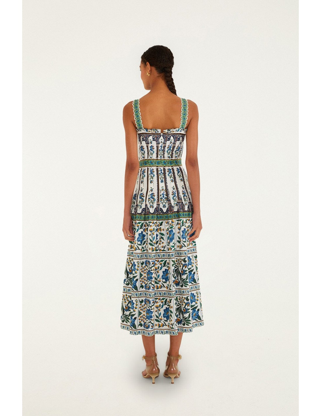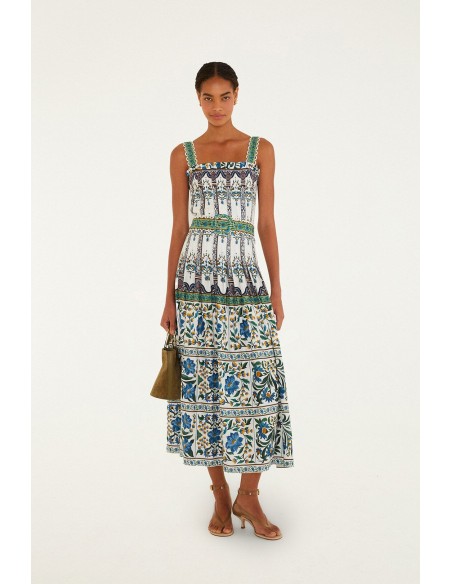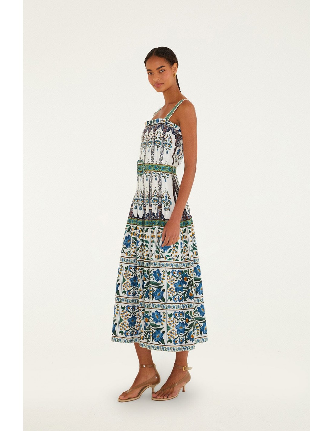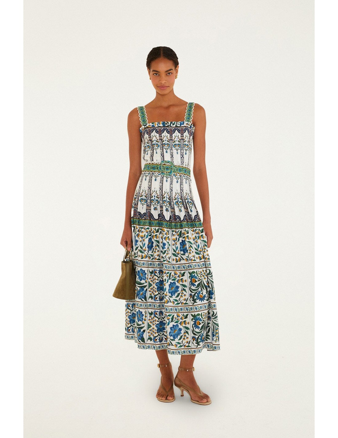 Apuesta por el vestido maxi FARM Rio Manoela y añade a tu armario una prenda que une sostenibilidad, elegancia y frescura en un diseño atemporal.