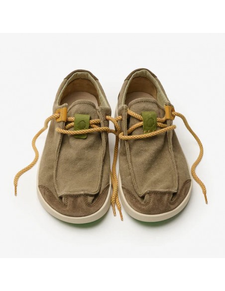 Con un estilo que evoca la fuerza y elegancia del águila, estos mocasines destacan por su equilibrio entre comodidad, ligereza y personalidad. Su confección en algodón reciclado aporta sostenibilidad y estructura, mientras que los detalles en serraje y las costuras a mano refuerzan su carácter auténtico y artesanal.
